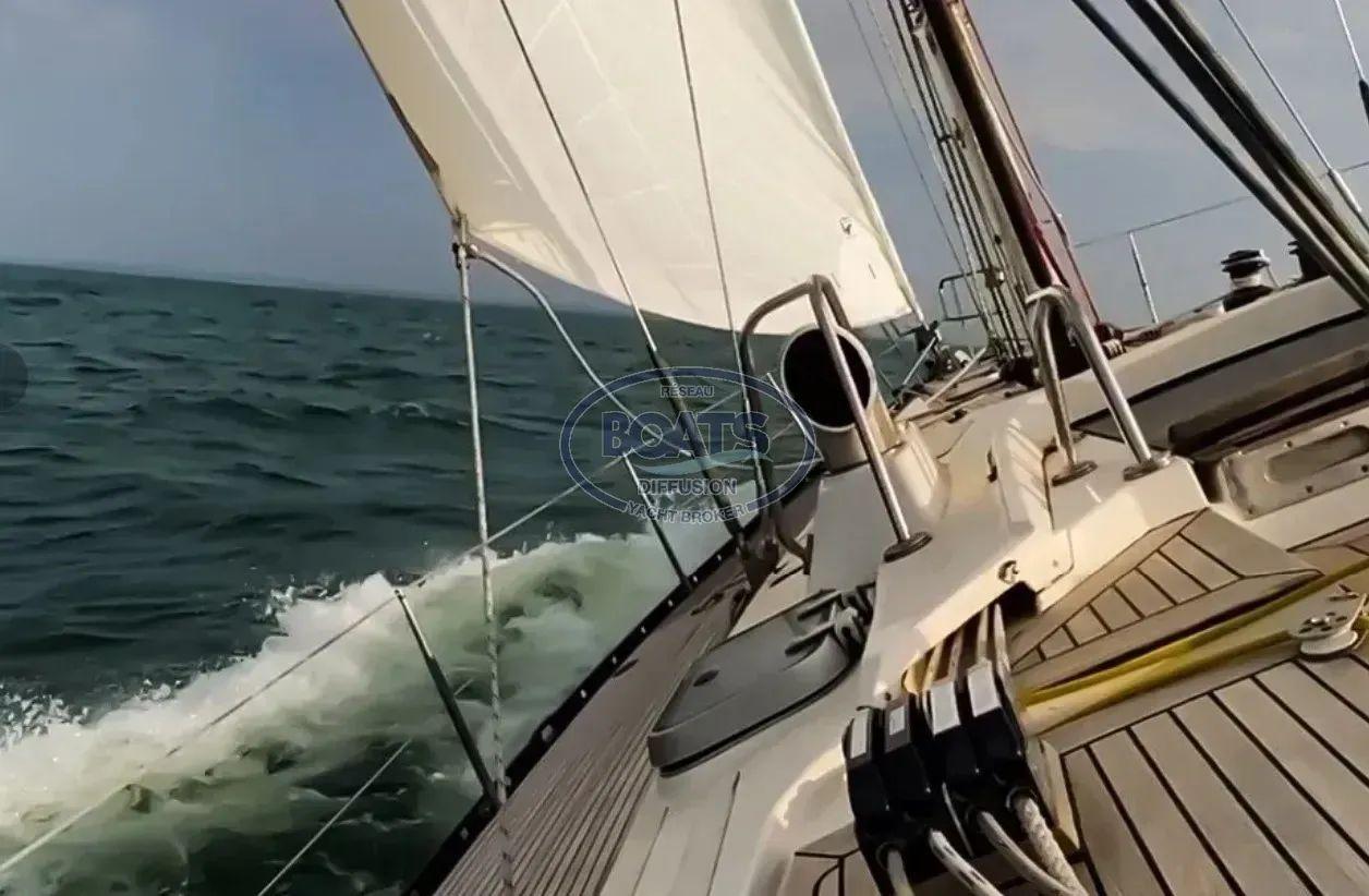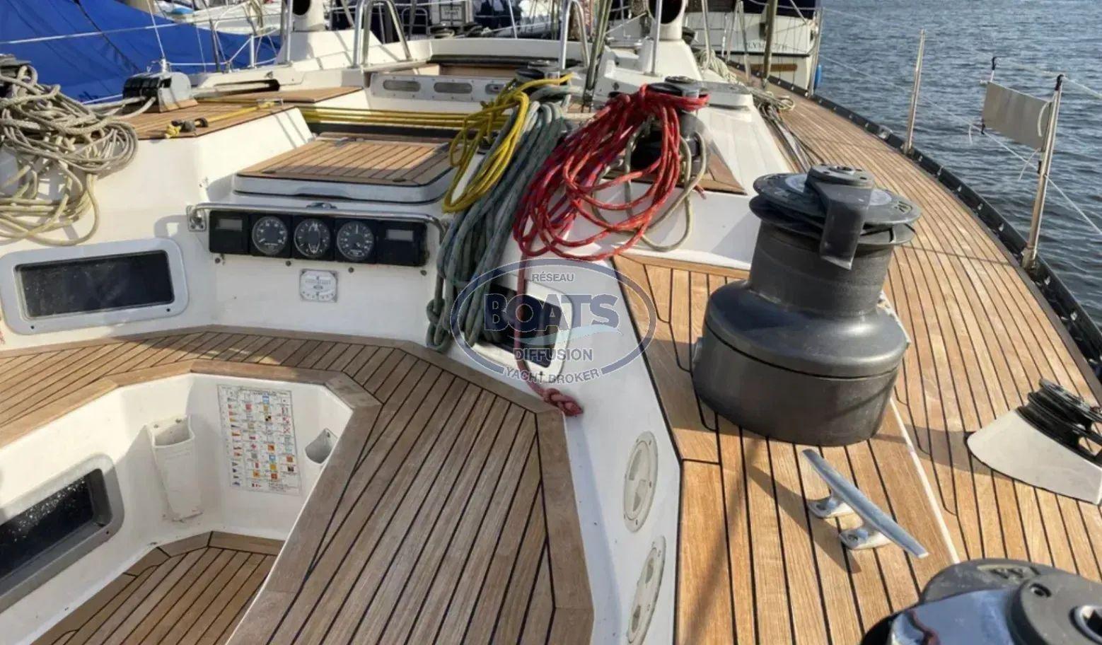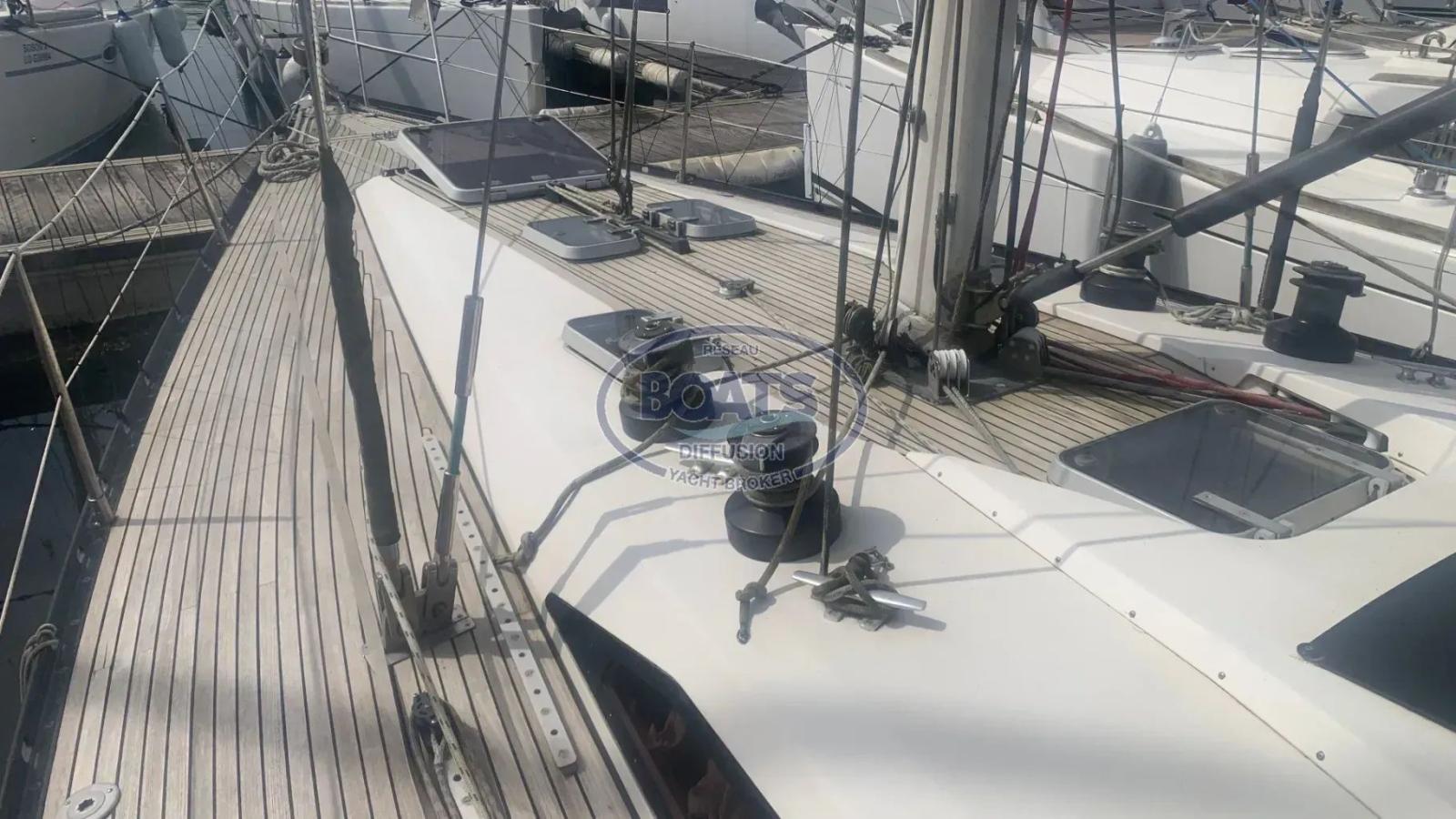 Fully equipped: 7 Lewmar winches (ST 46, 58, 70), mainsail & genoa tracks with tackle, hydraulic backstay & vang, stainless steel bowsprit for asymmetric spinnaker.