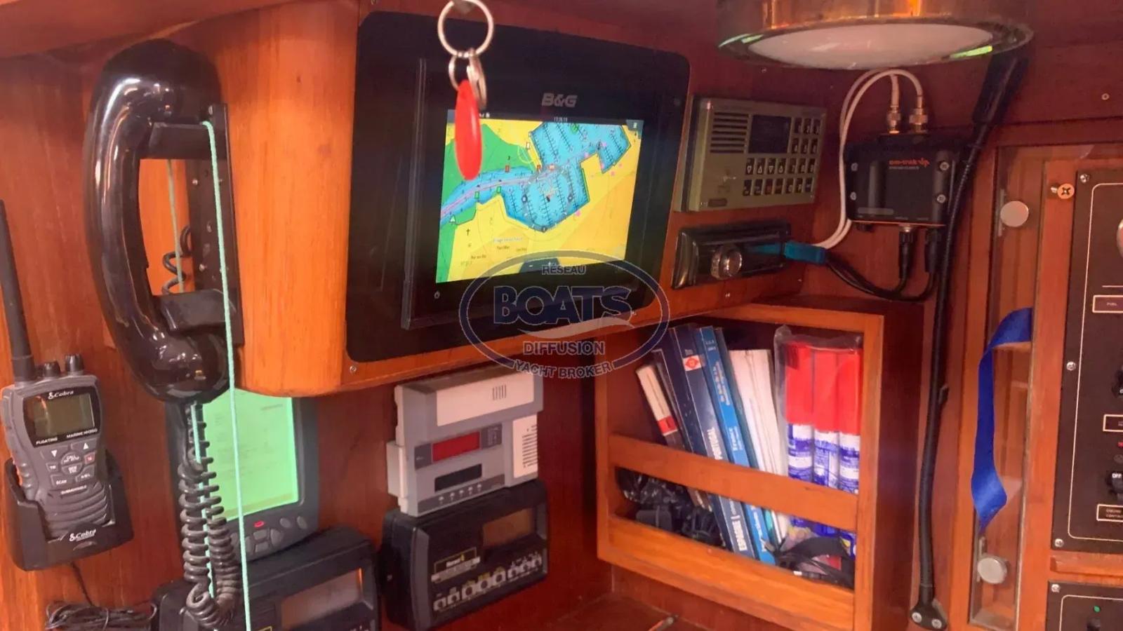 Navigation station with B&G Vulcan 9 chartplotter (new 2022) and B&G Halo 20 radar (new 2022).