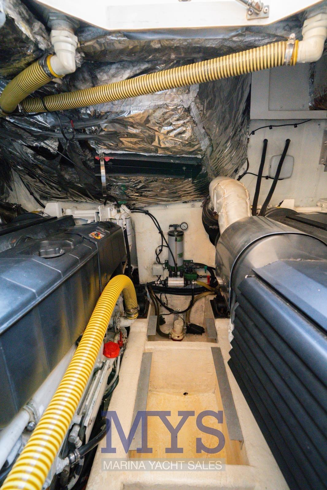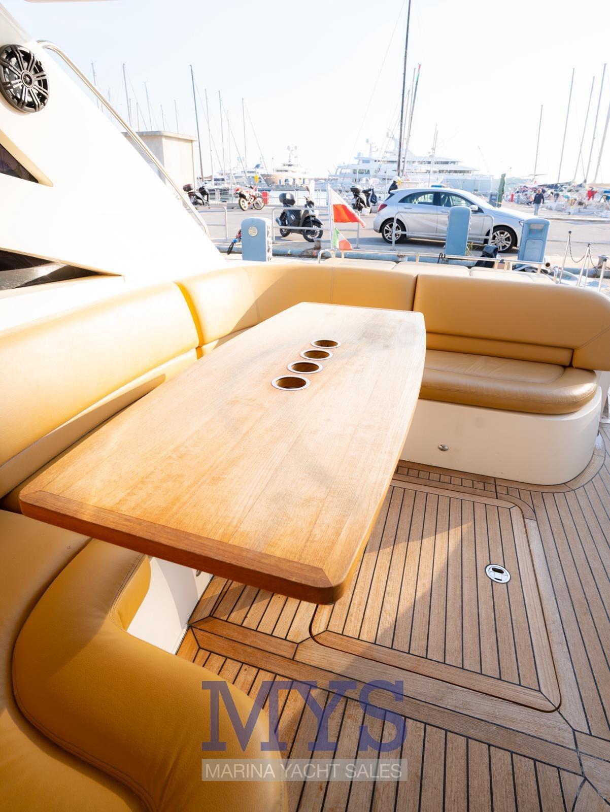 Engine Alarm, Water pressure pump, Special Colour (Scafo colore grigio), Deck Shower, Directional Spotlight, Hydraulic Flaps, Tender Garage, Hard top, Flaps Indicators, Washbasin in the cockpit, Courtesy Lights, Gangway, Platform, Automatic Bilge Pump, Manual Bilge Pump, Entry door, Teak Cockpit, Shorepower connector, Water harbor connector system, Electric Windlass, swimming ladder, cockpit table, Horn.