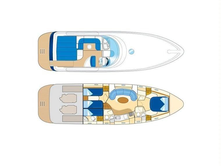 Layout: 2 cabins 2 bathrooms + crew cabin