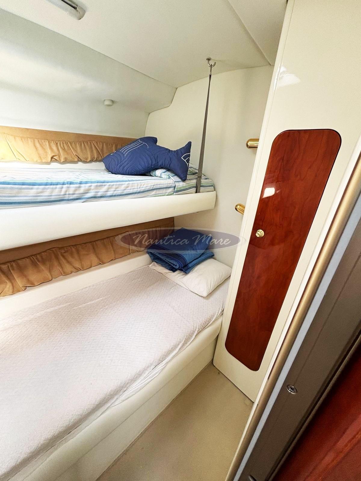 Engine Alarm, Bilge Alarm, Water pressure pump, Deck Shower, Hydraulic Flaps, Courtesy Lights, Auxiliary Engine, Fenders, Gangway, Platform, Automatic Bilge Pump, Manual Bilge Pump, Teak deck, Entry door, Teak Cockpit, Shorepower connector, Water harbor connector system, Voltage Rectifier, Rollbar, Electric Windlass, swimming ladder, cockpit table, Living Room Foldable Table, Tender, Horn.