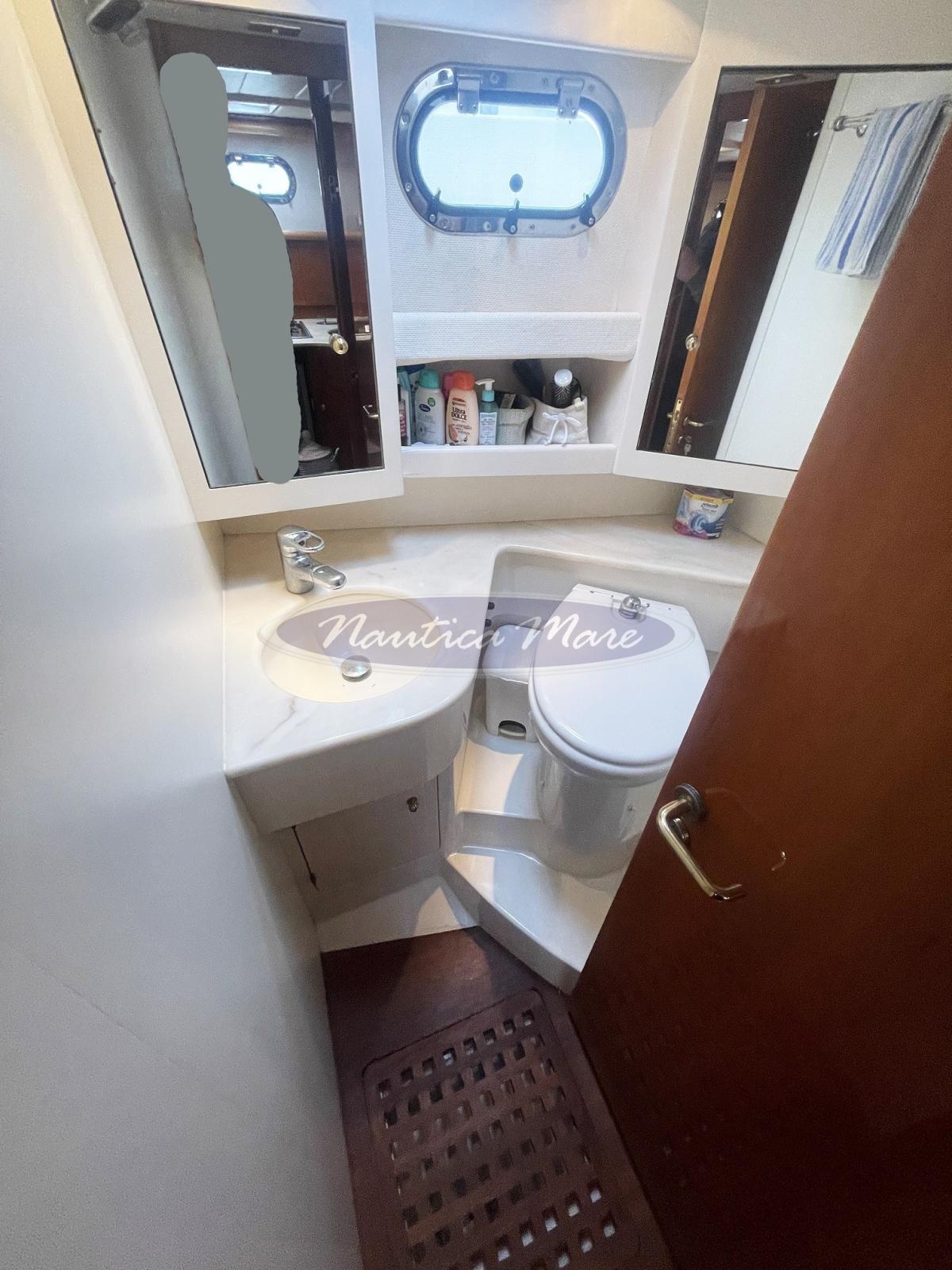 Engine Alarm, Alternator, Anchor (con musone inox a prua), Electric Engine Compartment Opening, Water pressure pump, Shore power cable, Deck Shower (a prua ed a poppa con miscelatore c/f), Bow Thruster (Vetus), Directional Spotlight (di profondità sul tetto hard top), 2 Hydraulic Flaps (elettroidraulici con doppio pistone attuatore), Hard top (Vetroresina e acciaio con tendalini di chiusura), Fire Extinguishing System, Anchor Chain Washdown (a prua), Washbasin in the cockpit, Courtesy Lights, Fenders, Gangway (acciaio e teak), Platform (bagno a poppa con rivestimento in teak sintetico), Automatic Bilge Pump, Manual Bilge Pump, Entry door (tuna door a poppa), Teak Cockpit (sintetico), Shorepower connector (con caricabatterie), Electric Windlass, swimming ladder (integrata nella piattaforma bagno a poppa), cockpit table (doppio tavolo nel pozzetto e dinette esterna), Horn, T-Top (in acciaio inox), Bow Winches.