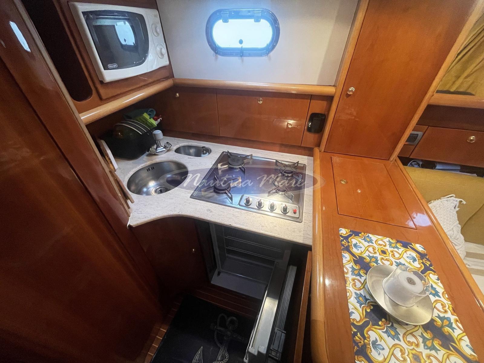 Galley (interna ed esterna, a gas), Burner (Gas), Deck Refrigerator.