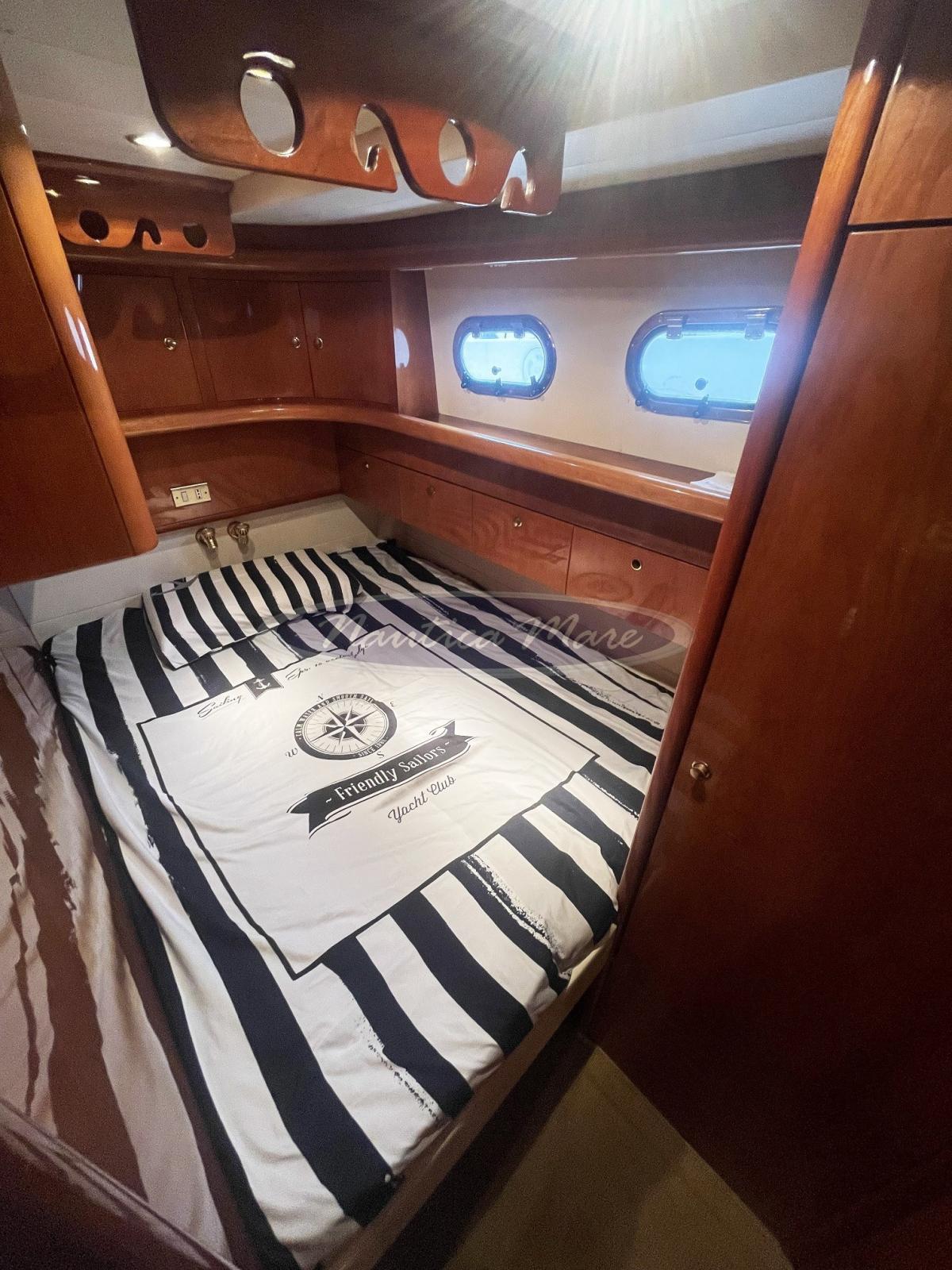 The engine is substantial thanks to the two 425 hp Caterpillars in shaft line (equipped with trolling valves) that guarantee the hull excellent speeds (both cruising and maximum) and low fuel consumption.
