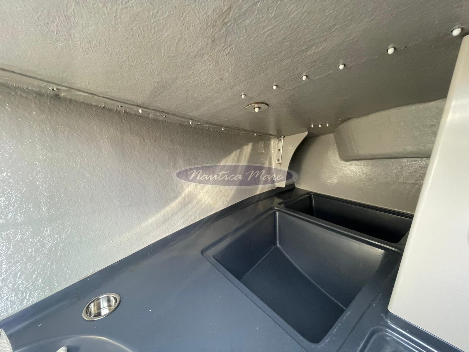 All the pleasure of navigation without maintenance difficulties also thanks to the choice of synthetic teak. A versatile boat, designed to adapt to all sailors, it can be used alone or in pairs, with family or friends. Essential equipment is reported to the helmsman, aft, to facilitate handling. It has a cabin with ample storage and two comfortable berths to spend the night on board. The movable keel offers stability and practicality, in shallow waters or with tides and the retractable bowsprit offers a smooth, unhindered sailing experience. All sails are furling and the retractable table also offers unparalleled comfort. Boat with unparalleled performance even in very little wind, easy to maneuver and transport, quick to rig.