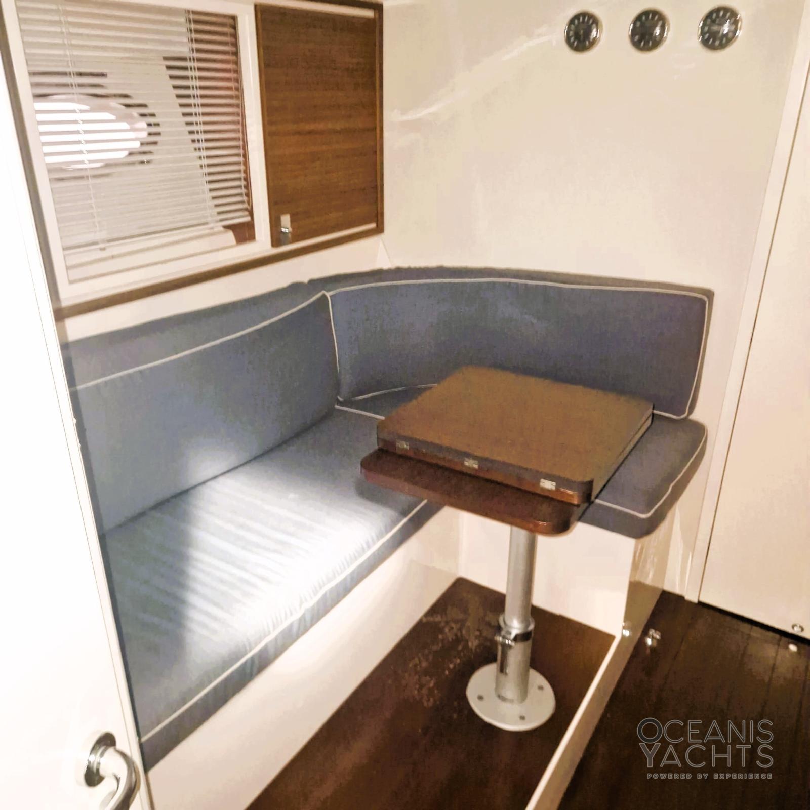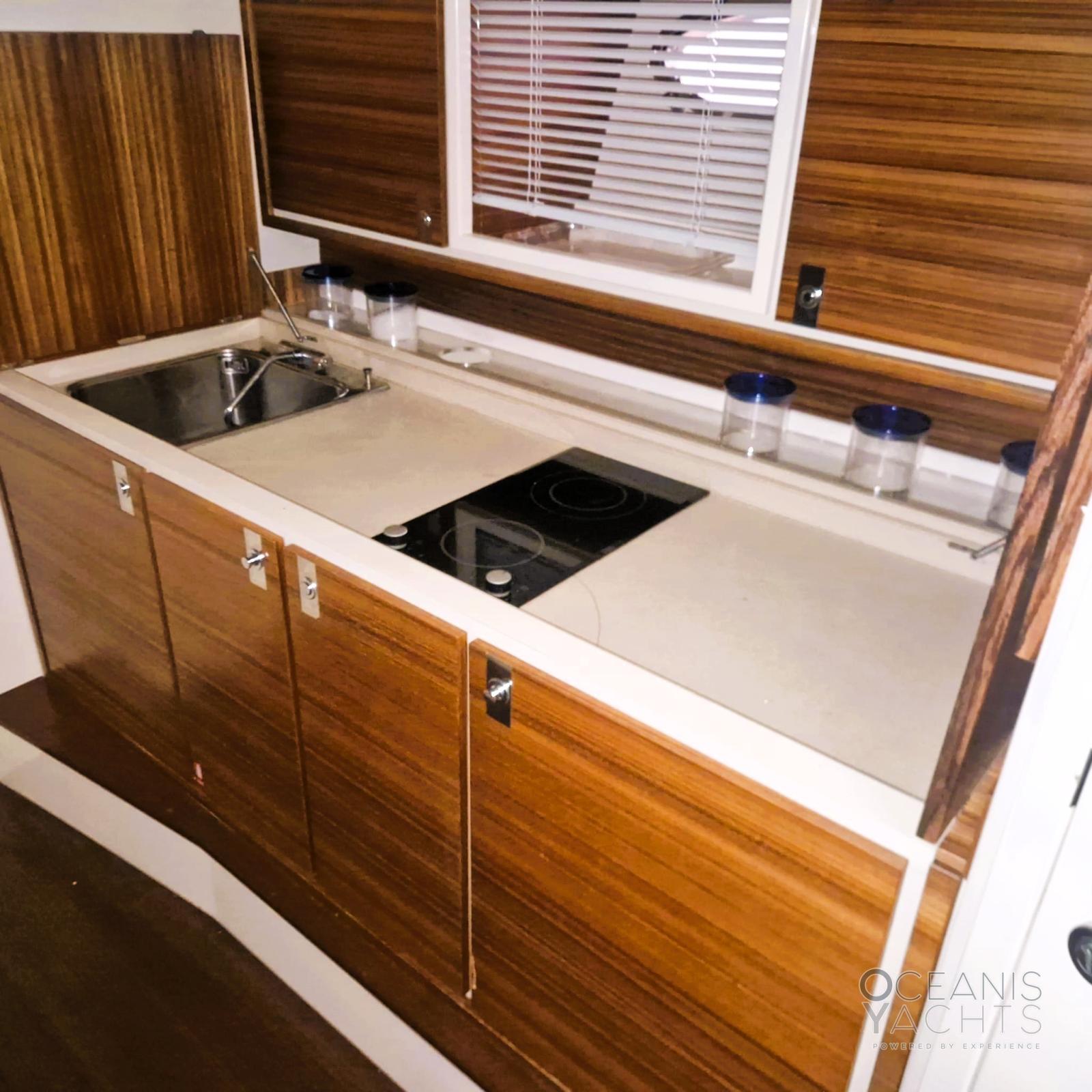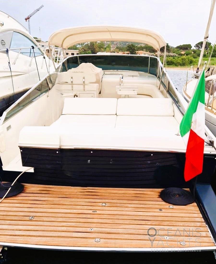 Engine Alarm, Water pressure pump, Deck Shower, Electric Flaps, Washbasin in the cockpit, Courtesy Lights, Fenders, Platform, Manual Bilge Pump, Teak deck, Entry door, Open Cockpit, Teak Cockpit, Shorepower connector, Electric Windlass, cockpit table.