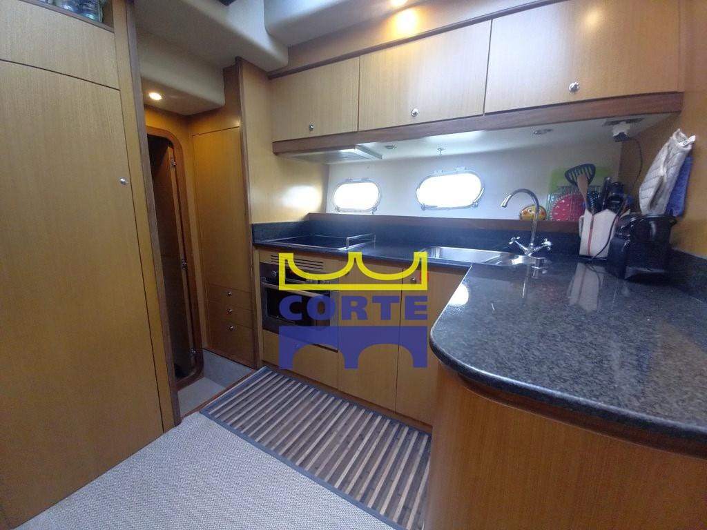 Going below deck, on the right, is the guest cabin with twin beds and a bathroom with double access from the cabin and the corridor. In the bow is the VIP cabin with private bathroom. On the left, however, is the kitchen. From the galley it is possible to access the sailor's accommodation and then the engine room between the latter and the owner's cabin