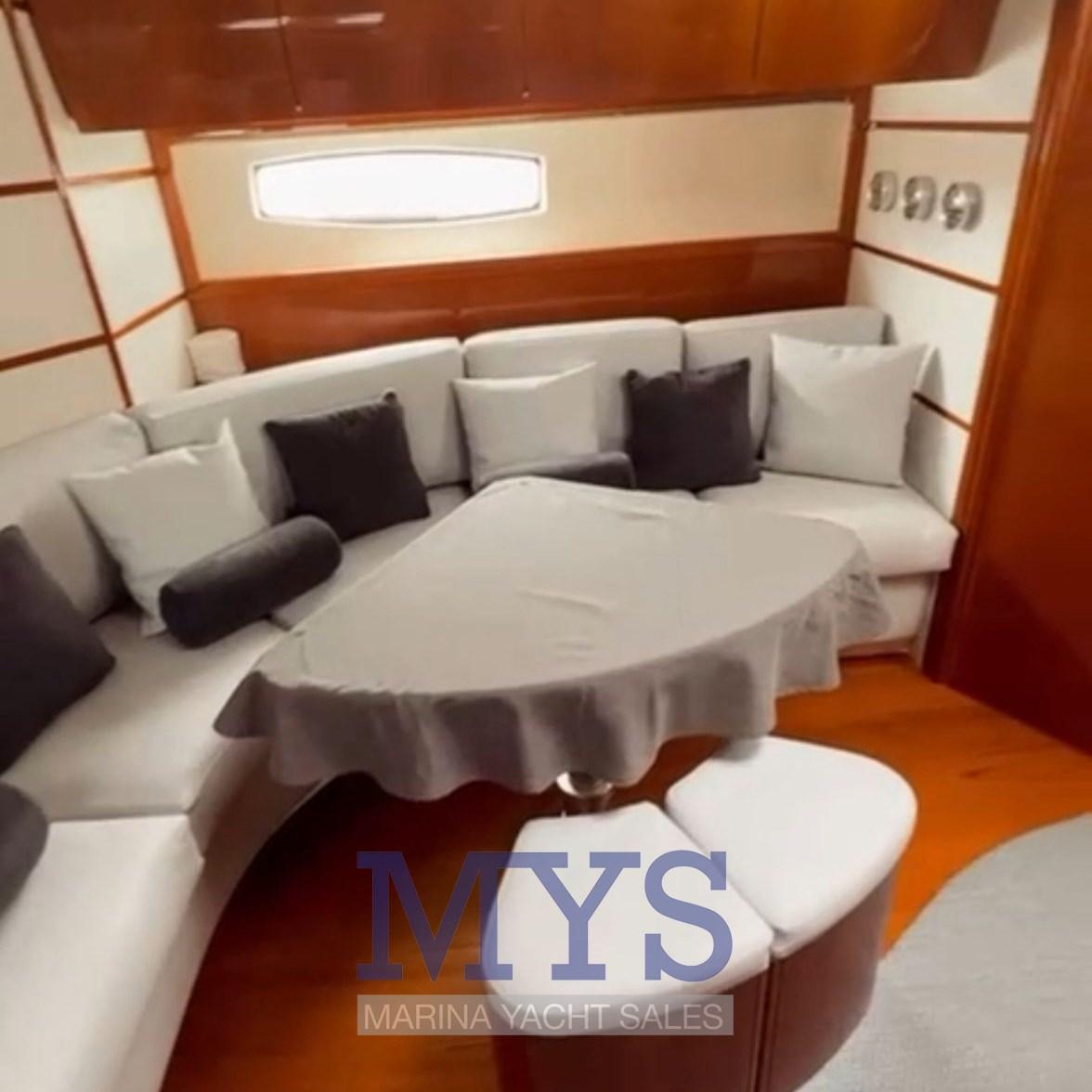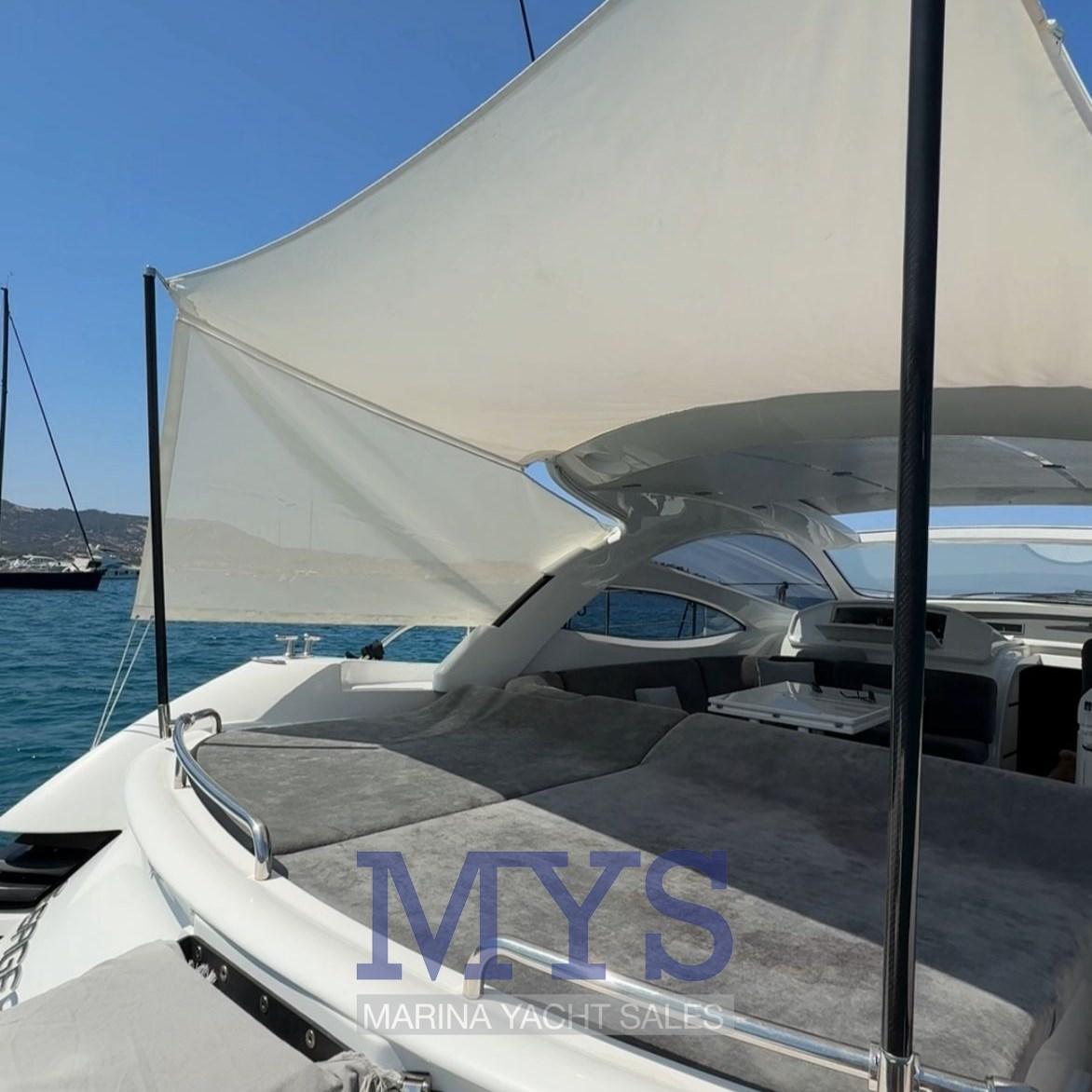 Engine Alarm, Water pressure pump, Deck Shower, Hydraulic Flaps, Hard top, Fire Extinguishing System, Flaps Indicators, Washbasin in the cockpit, Courtesy Lights, Underwater lights, Gangway, Platform, Automatic Bilge Pump, Teak Cockpit, Shorepower connector, Electric Windlass, swimming ladder, cockpit table, Horn, Stern Winches, Bow Winches.