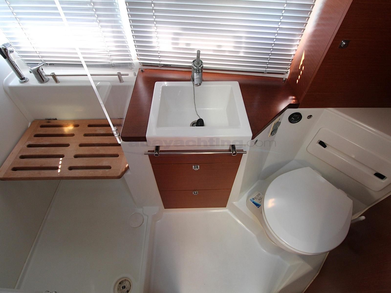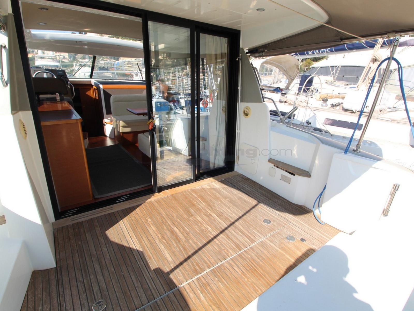 The Jeanneau NC 11 is a practical choice for those looking for a user-friendly boat, perfect for weekends and longer cruises. The interior layout features a lovely, bright dinette – thanks to the large windows – which can be converted into various configurations, plus two proper cabins with generously sized double beds and a bathroom with a separate shower. There are numerous features to ensure a pleasant stay on board: air conditioning (hot/cold), a generator and a fully equipped galley provide greater comfort and autonomy. The hydraulic gangway and side door simplify movement, making everything more straightforward, whilst the convertible cockpit allows you to enjoy the outdoor space to the full. The Raymarine electronics, complete with autopilot and GPS plotter, make navigation intuitive and relaxed, ideal for those seeking simplicity and control without stress.