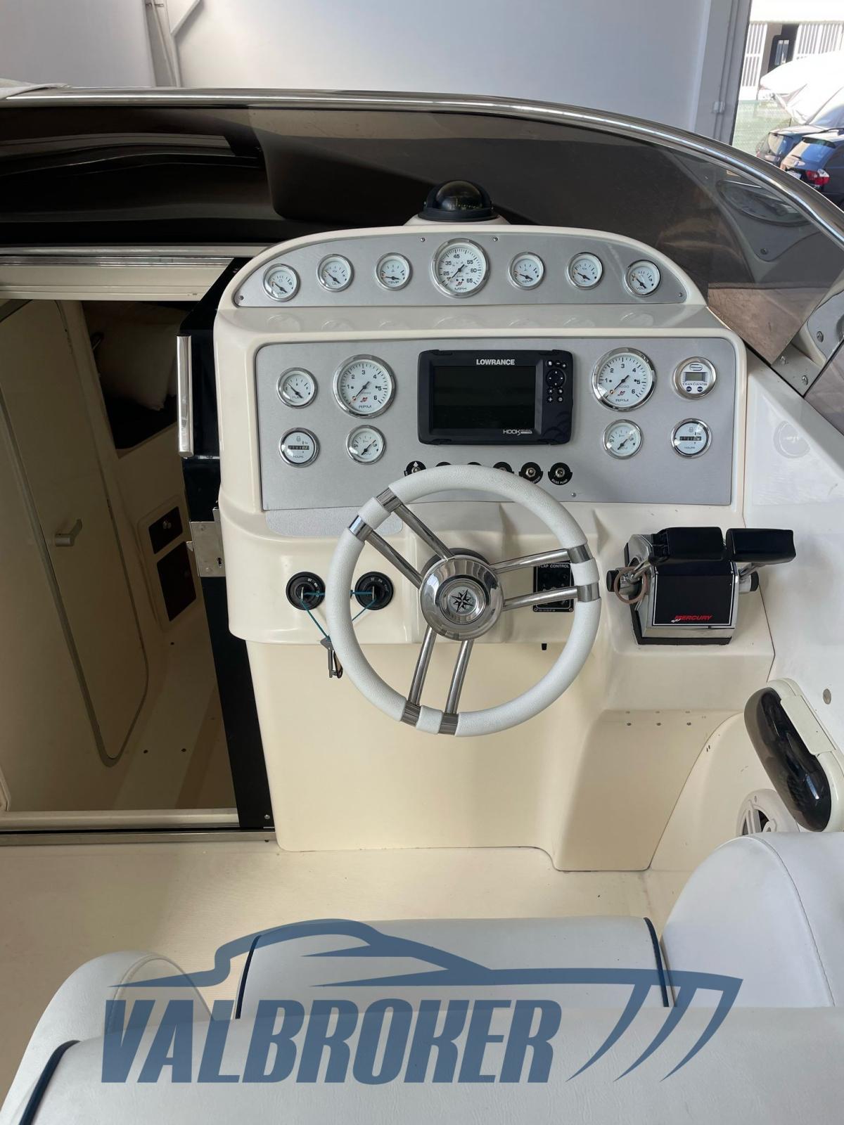 Solid, sporty, robust hull synonymous with high build quality and elegance. Fixed sundeck at the stern. Powered by 2x350 Mercury Magnum V8 EFI/Mp Bravo I petrol.