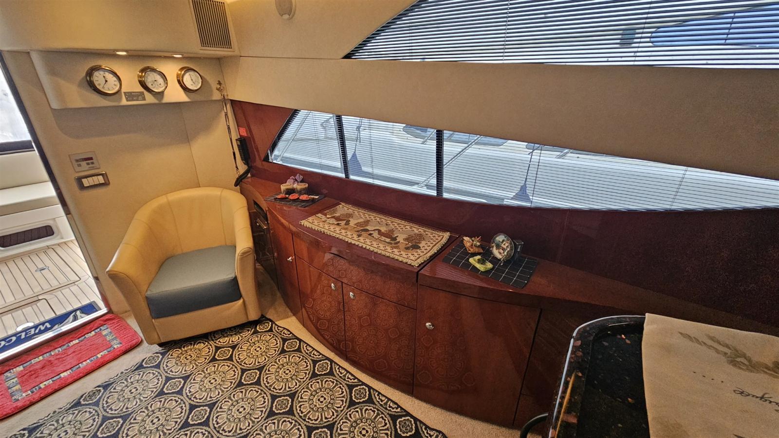 Fume/Gas Detector, Bilge Alarm, Deck Shower, Directional Spotlight, Electric Flaps, Fire Extinguishing System, Flaps Indicators, Courtesy Lights, Gangway, 4 Automatic Bilge Pump, Teak Cockpit, swimming ladder, cockpit table.