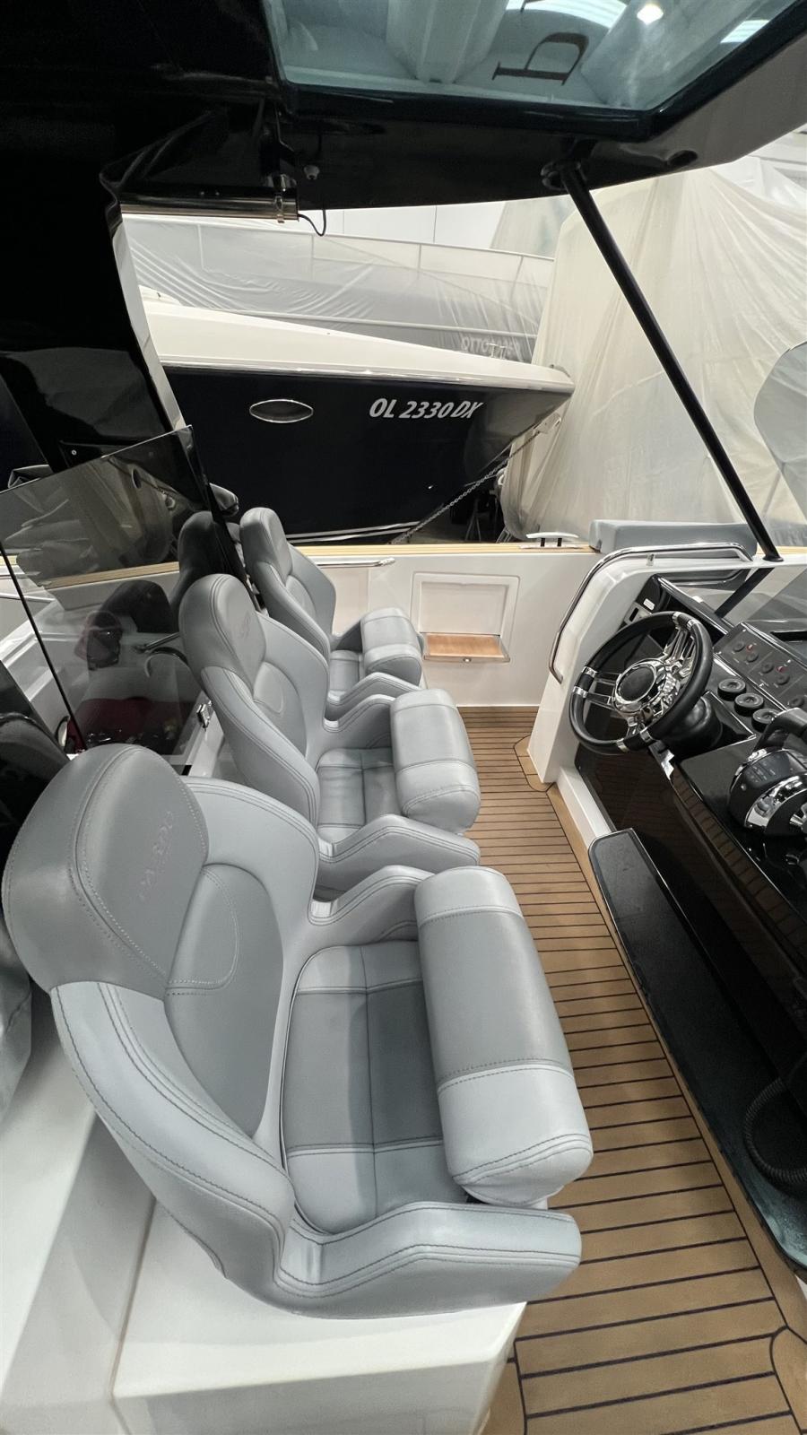 Electronic engine control, On-Board Computer, Hours Counter, Display, Joystick, Consumption monitor, Plotter with GPS antenna, Co-pilot seat.