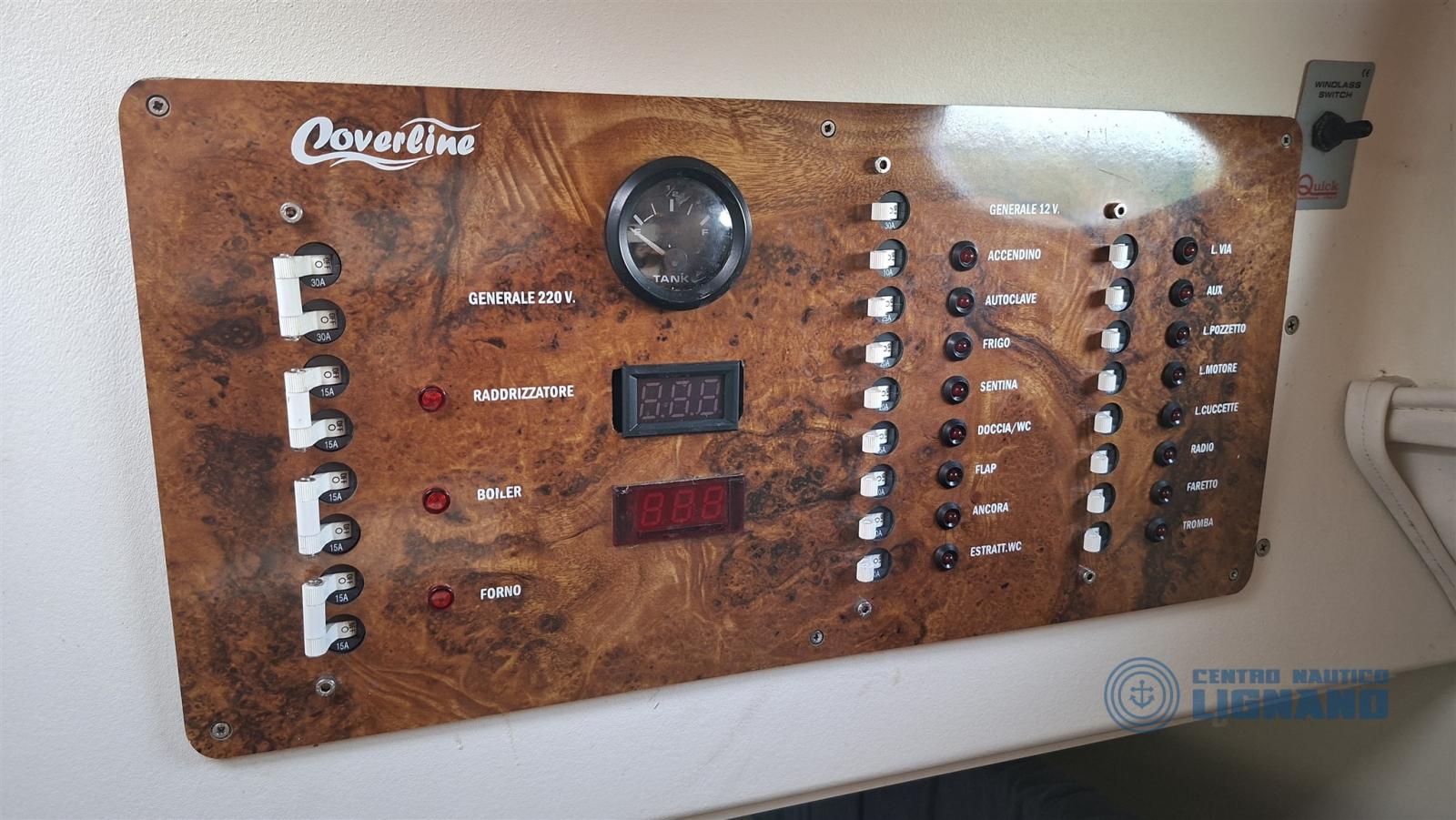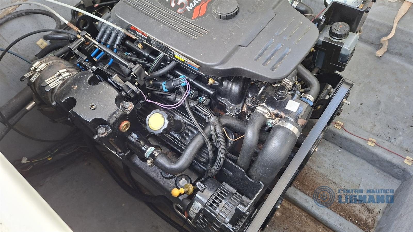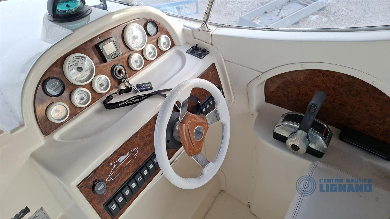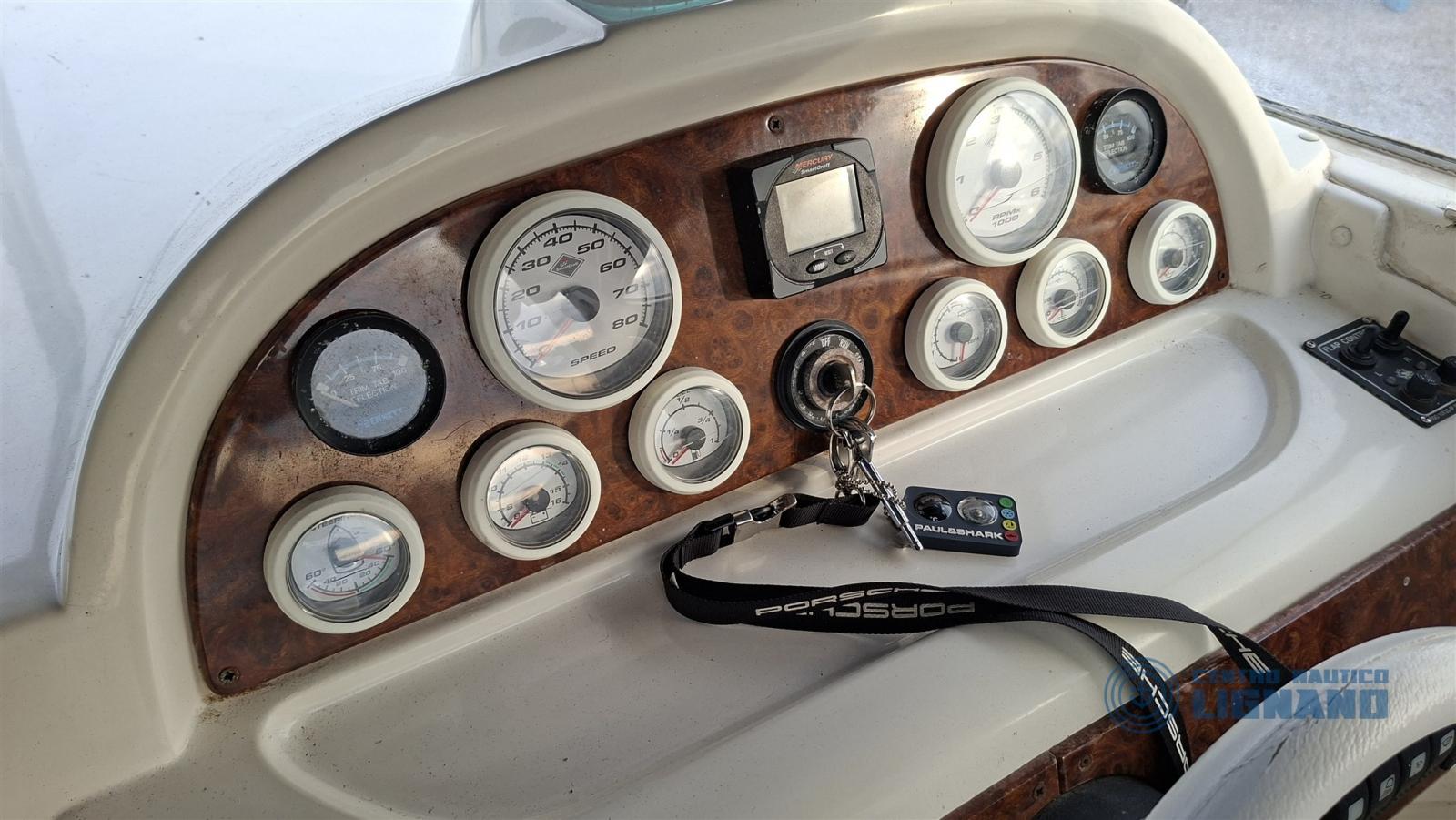 CONSOLE: horn, hydraulic flaps, trim indicator, rpm indicator, speedometer, Mercury Smartcraft, alternator indicator, fuel level, ignition key, flaps control, compass, rudder indicator, push-button panel (horn, navigation and navigation lights, roolbar light, autoclave, bilge pump, bilge aeration, anchor control).