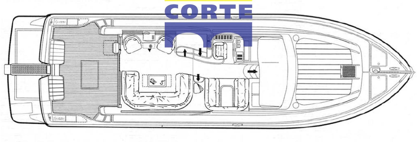 Warm Water System (bivalente), Safe, Inverter Air Conditioning, 12V Outlets, 220V Outlets, Video camera (poppa e sala macchine), Electric Toilet.