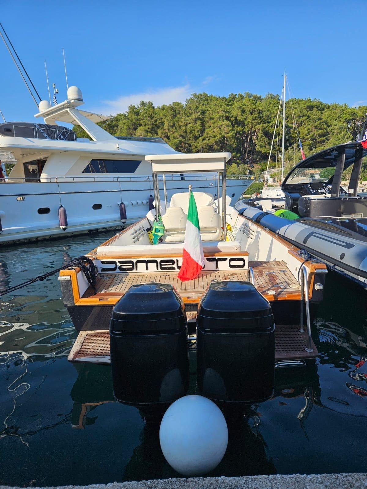 Splendid Tecnomar 38 FB, an iconic boat with a sporty character, completely reconditioned in 2024 with interventions carried out in a workmanlike manner at the renowned shipyards of the Molfetta defenses.