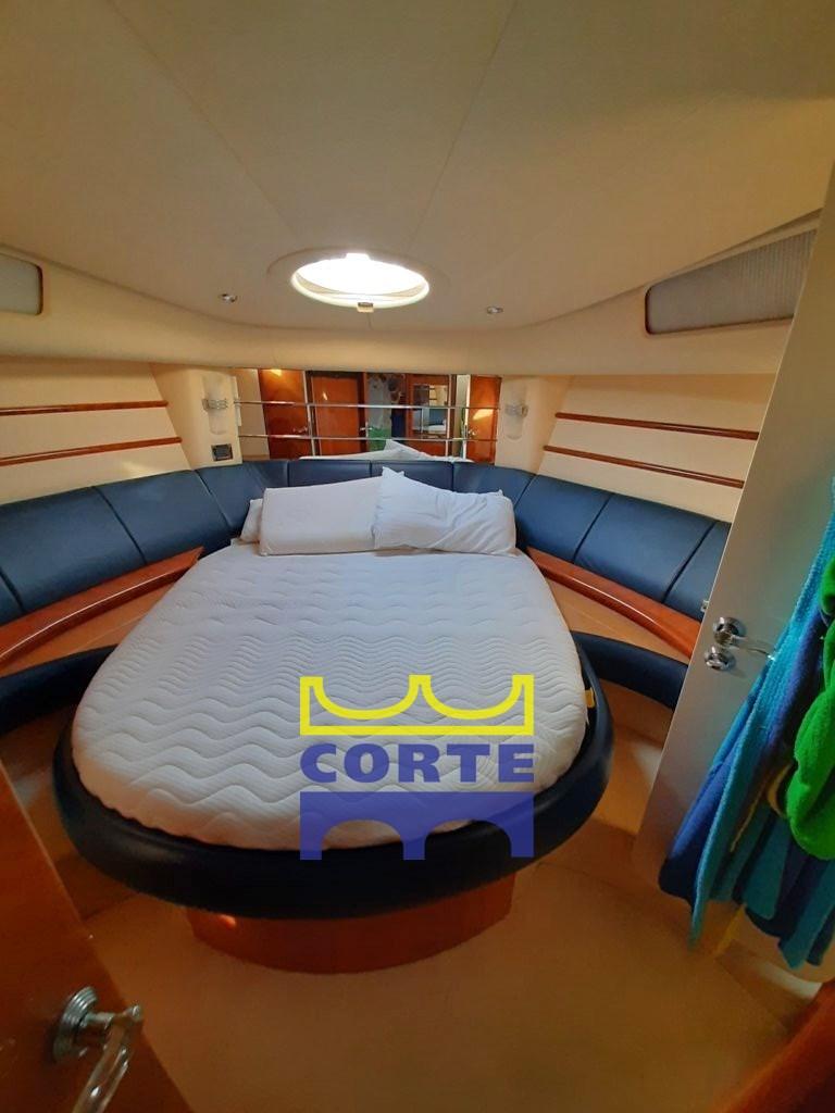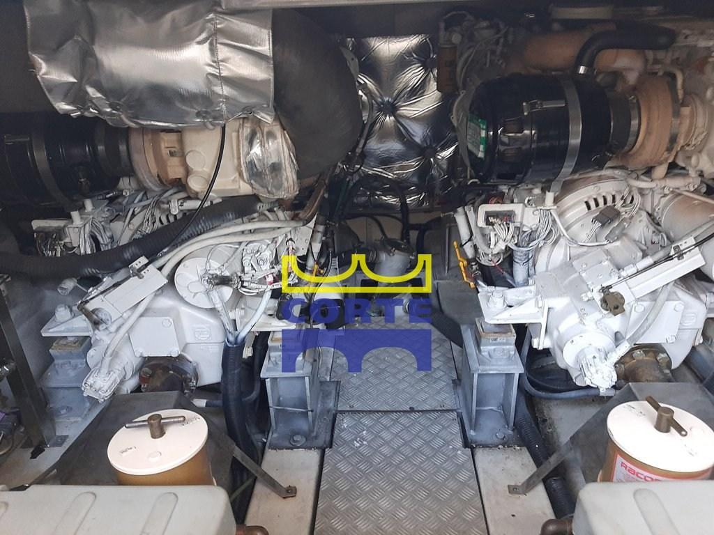 Engine Alarm, Bilge Alarm, Water pressure pump, Battery charger (nuovo con dislpay controllo remoto), Deck Shower, Twin Steering, Directional Spotlight, Hydraulic Flaps, Tender Crane (passerella), Underwater lights (sotto piattaforma di poppa), Gangway (idraulica), Platform (poppa in teak), Automatic Bilge Pump, Entry door, Teak Cockpit, Shorepower connector, Rollbar, Electric Windlass, swimming ladder, Horn, Stern Winches, Bow Winches.