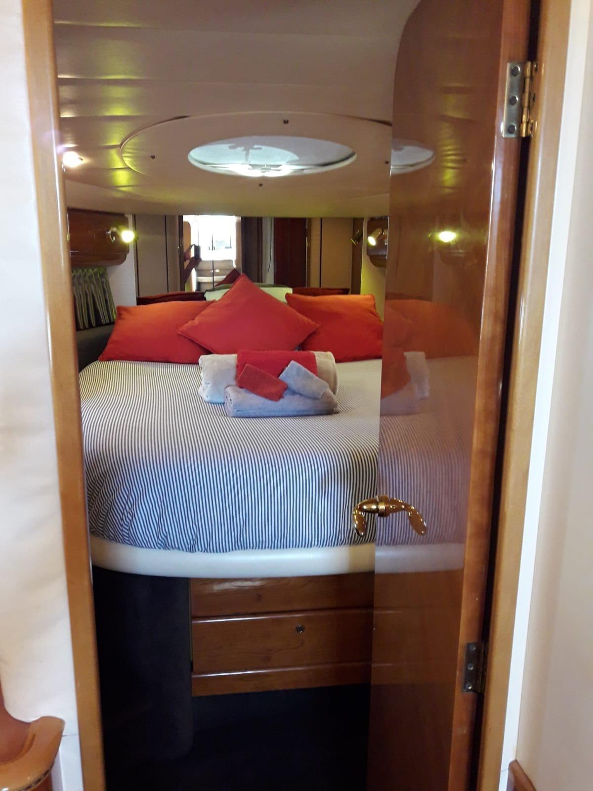 Master cabin with double bed and bathroom - guest cabin with two flat beds (convertible to double) - guest cabin with two flat beds (convertible to double) - guest bathroom.
