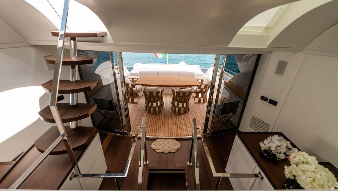 4 m. tender with outboard - watermaker - hydraulic bow and stern thrusters - fridge (two internal, one external) - freezer - induction electric hob - 90 cm oven - dishwasher - washing machine - dryer - air conditioning - Fusion stereo system - 2 x 25 Mase generators - LCD TV (n. 8) - home automation.