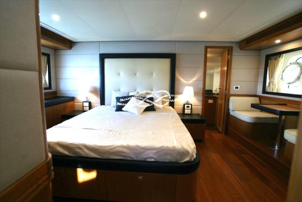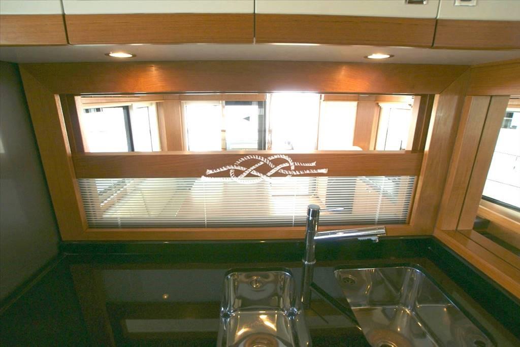 CMC Marine zerospeed stabilizing fins - third control station at the stern - maneuvering joystick with GPS interface - Vetus bow thruster - Condaria air conditioning - Kohler 2 x 17 kW generator sets (230 and 770 engine hours) - Idromar watermaker - tender with Suzuki 15 hp 4t outboard - SAT antenna - fridge / freezer - fridge on flying bridge - dishwasher - Bosch oven - Bosch 4-burner electric hob - washing machine - LCD TV in the retractable saloon - TV in the owner's cabin, VIPs and guests - Bose Hi-Fi - T-Top on flying bridge with manually opening awning - davit for tender on the flying bridge - submerged lights aft and sides.