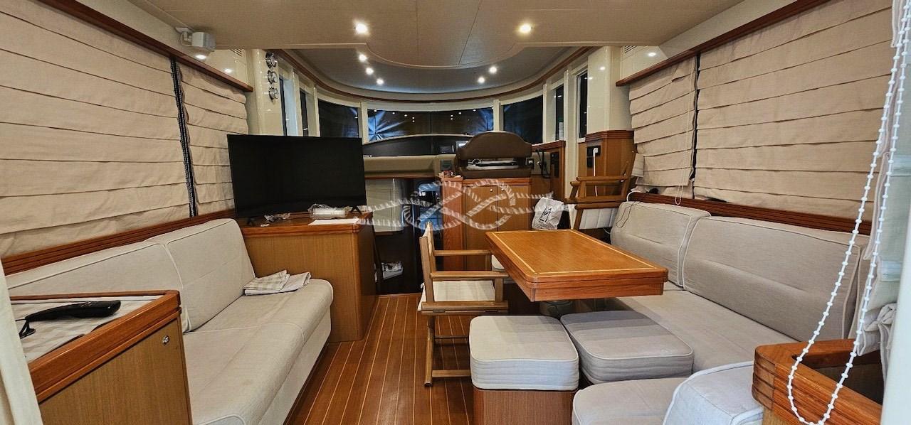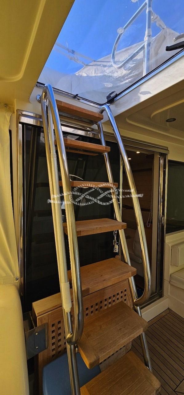 Fume/Gas Detector, Engine Alarm, Bilge Alarm, Water pressure pump, 6 Batteries, Teak Side Decks, Deck Shower, Hydraulic Flaps, Flaps Indicators, Anchor Chain Washdown, Gangway, Platform, Automatic Bilge Pump, Manual Bilge Pump, Teak Cockpit, Shorepower connector, Water harbor connector system, cockpit table, Tender, Horn, Stern Winches.