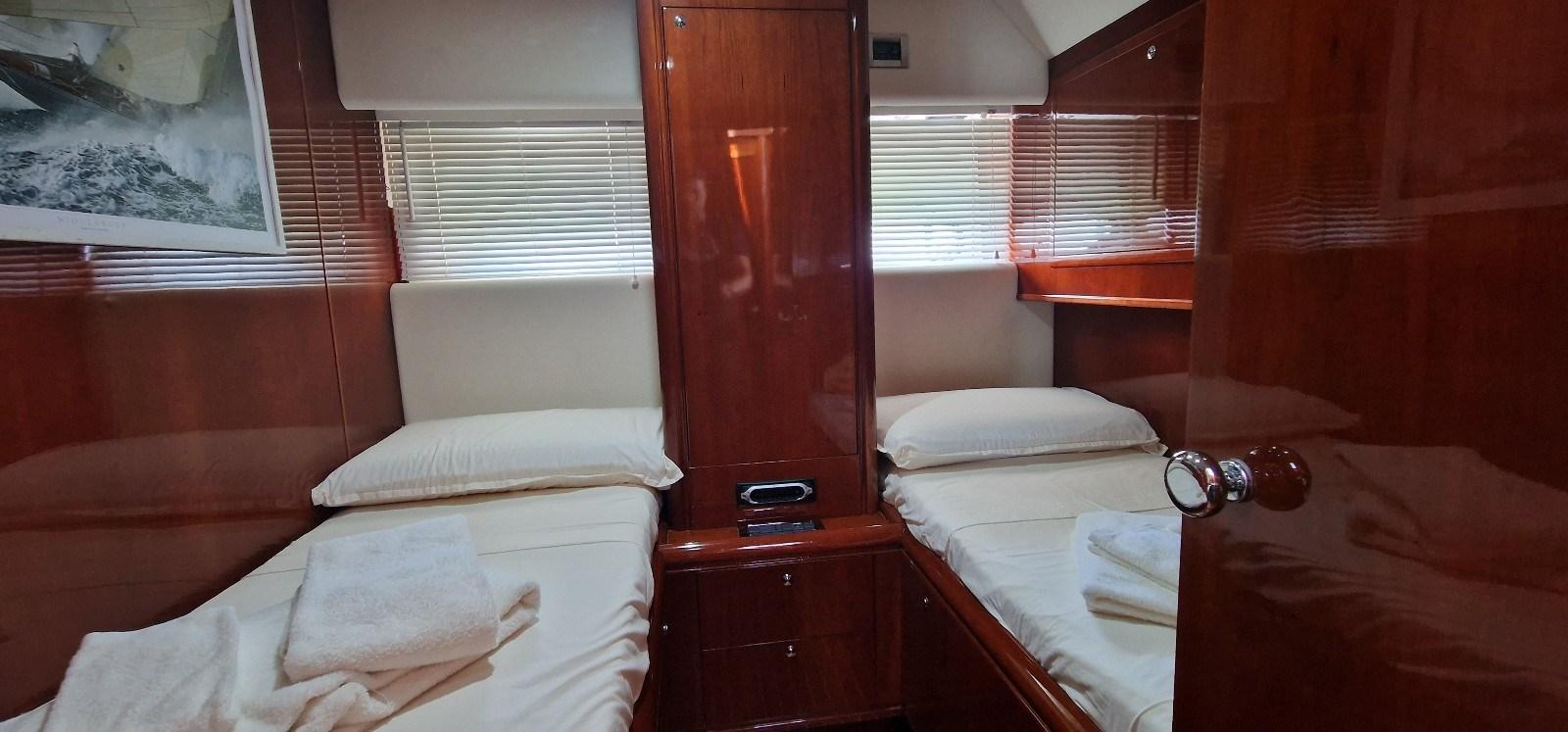 Master cabin with double bed and bathroom - aft vip cabin with double bed and bathroom - guest cabin with two beds and bathroom.