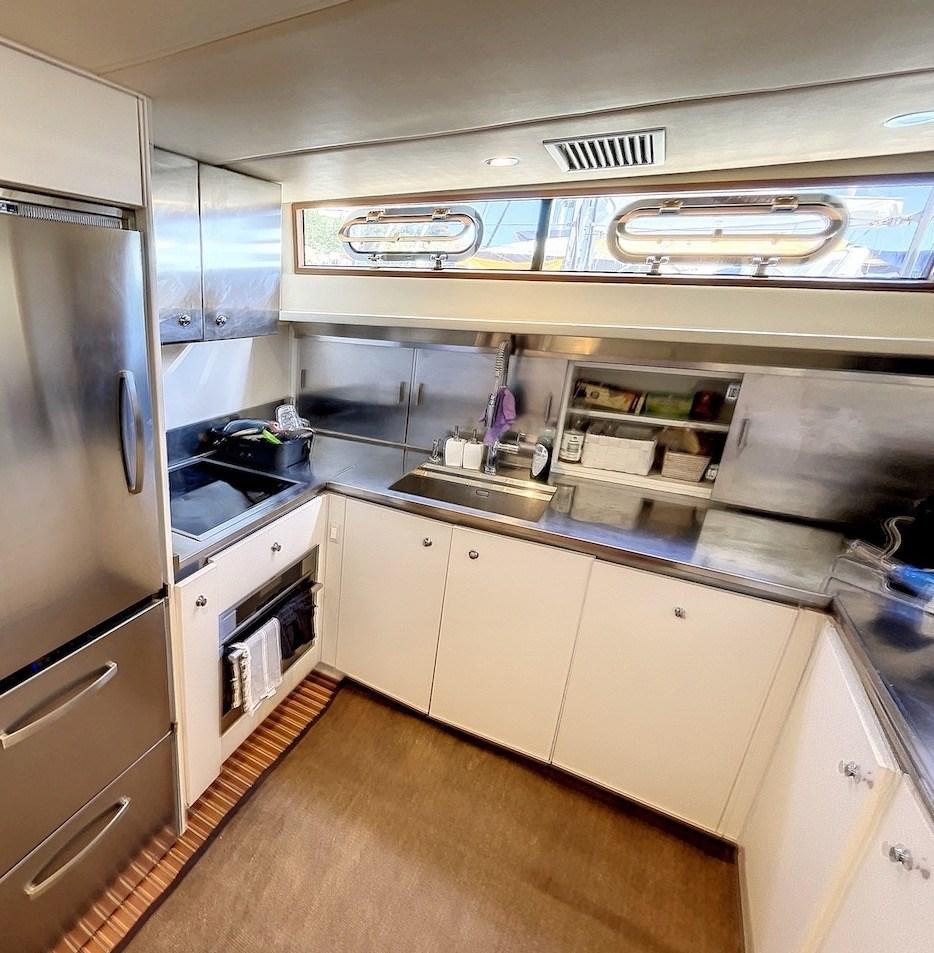 Humphree intruder flaps - Kohler generators 2 x 12 kW - electric bow and stern thruster - SAT antenna - TV antenna - LCD TV - stereo - air conditioning - electro-hydraulic gangway - tender with outboard - stern platform tenderlift - fridge - freezer - electric 4-burner hob - oven.