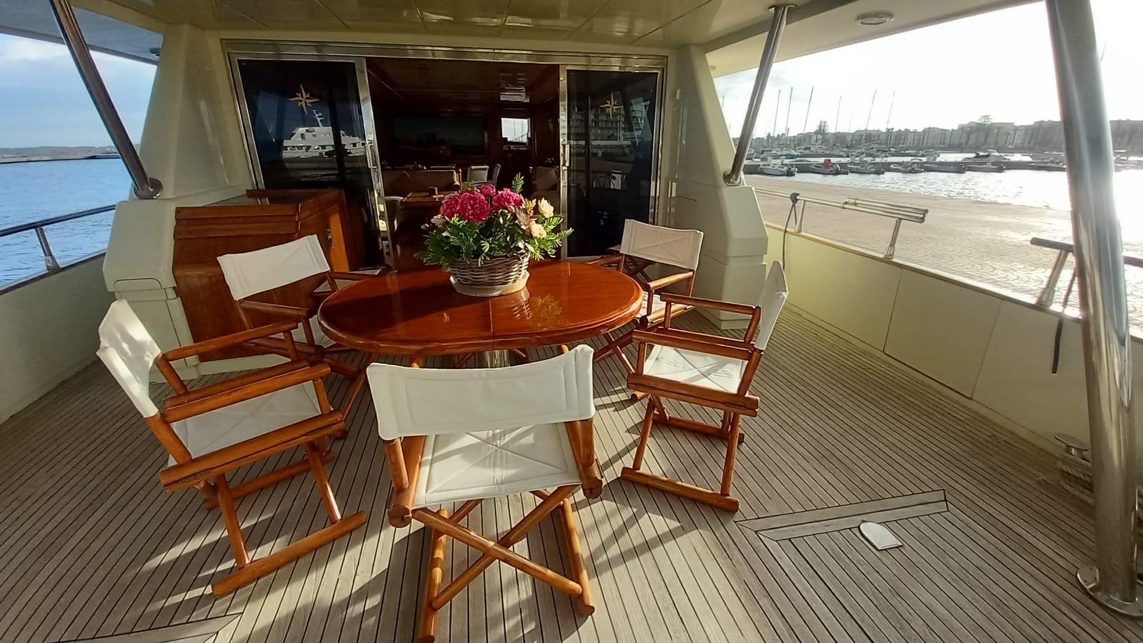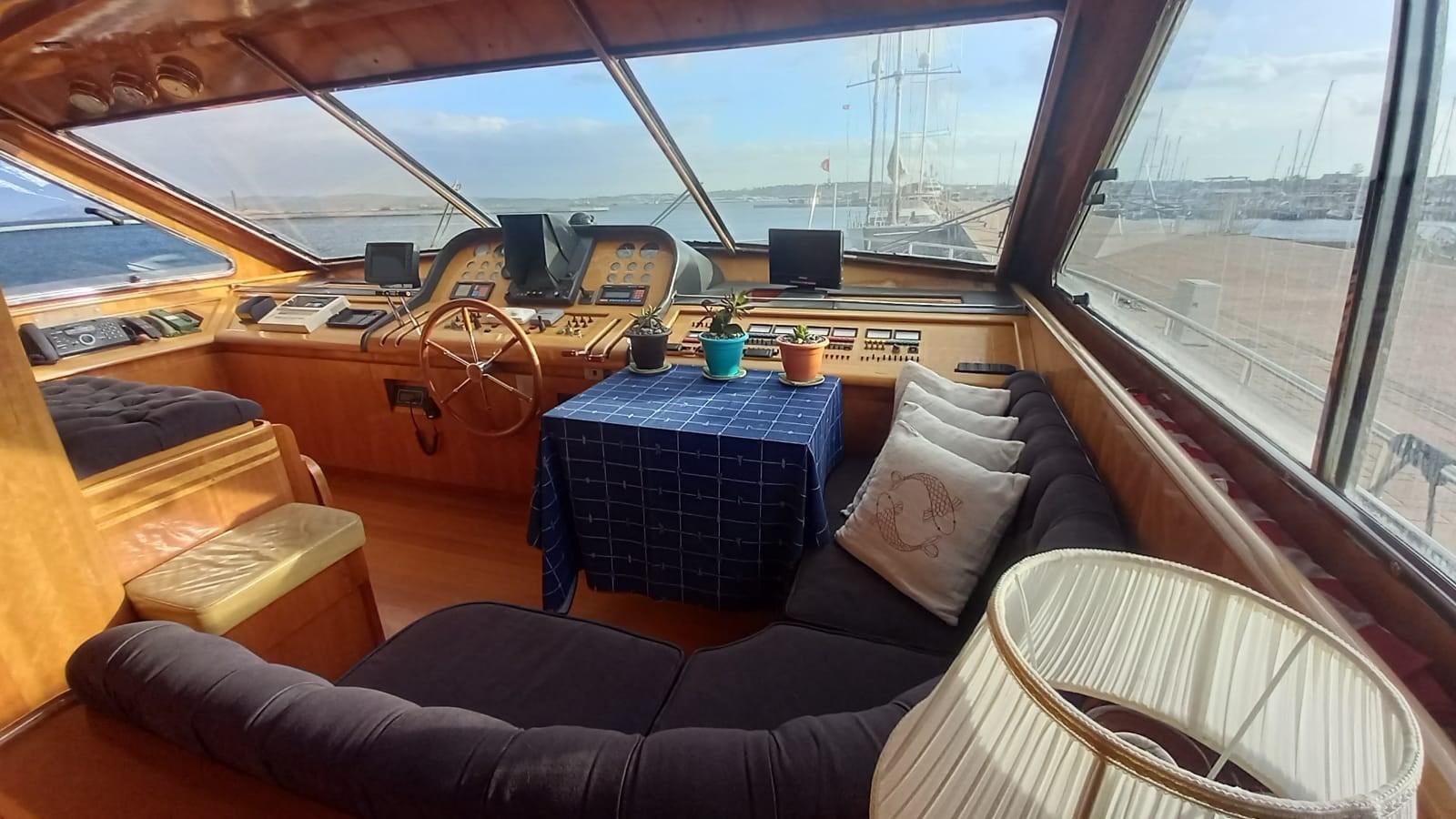 Works 2022 - 2023: renovation of teak flying bridge - renovation of flying bridge sofas - new Sunbrella external upholstery and cushion cover sponges - new carpet - new curtains - renovation of kitchen doors - new kitchen appliances (hob, oven, fridge, hood, dishwasher) - routine maintenance of engines and generators - new service batteries and motors - new bow thruster batteries - new internal and external light switches - flap piston overhaul - new LED lights Underwater - overhaul of the gangway with replacement of board, pump and sensors.