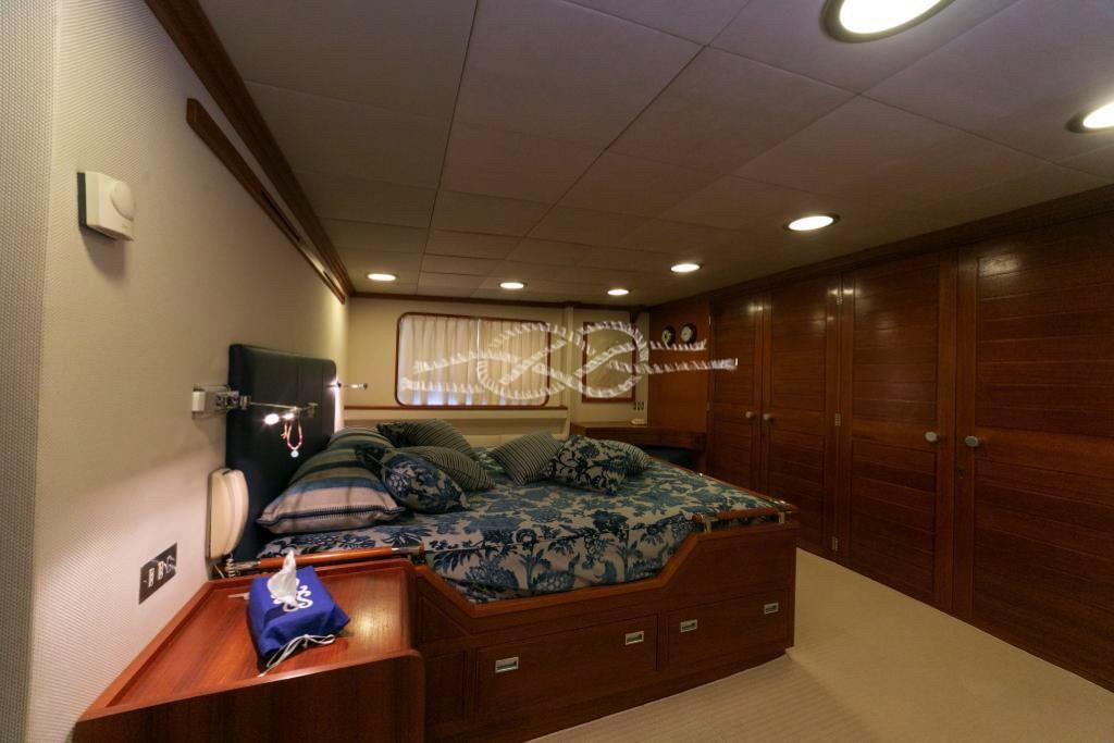 Engine Alarm, Bilge Alarm, Water pressure pump, Deck Shower, Bow Thruster (60 kW), Davits for tender on fly, Fire Extinguishing System, Anchor Chain Washdown, Gangway, Entry door, Teak Cockpit, Shorepower connector, Water harbor connector system, Electric Windlass, swimming ladder, Stabilizers (Vosper Koopnautic), cockpit table, 2 Tender (Novamarine 5,30 - EFB Volvo Penta 130 Hp | Novamarine 4,60 FB Yamaha 60 Hp), Horn, Teak Deckhouse, Stern Winches.