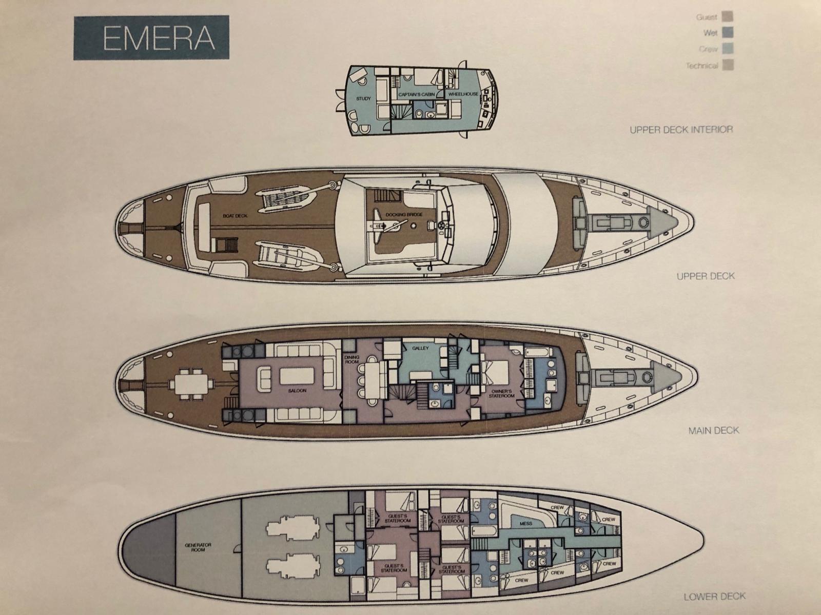Works 2019: new R.I.Na certificate. - new Baudoin 2 x 1,300 Hp (12M33.2) engines - complete renovation of the engine room with sandblasting, new pipes, seacocks - new grey water tanks - new water tanks - maintenance of the Hamman system - maintenance of the Alfa Laval system - complete maintenance and improvement of the toilet system - new autoclaves - new Wi-Fi system.