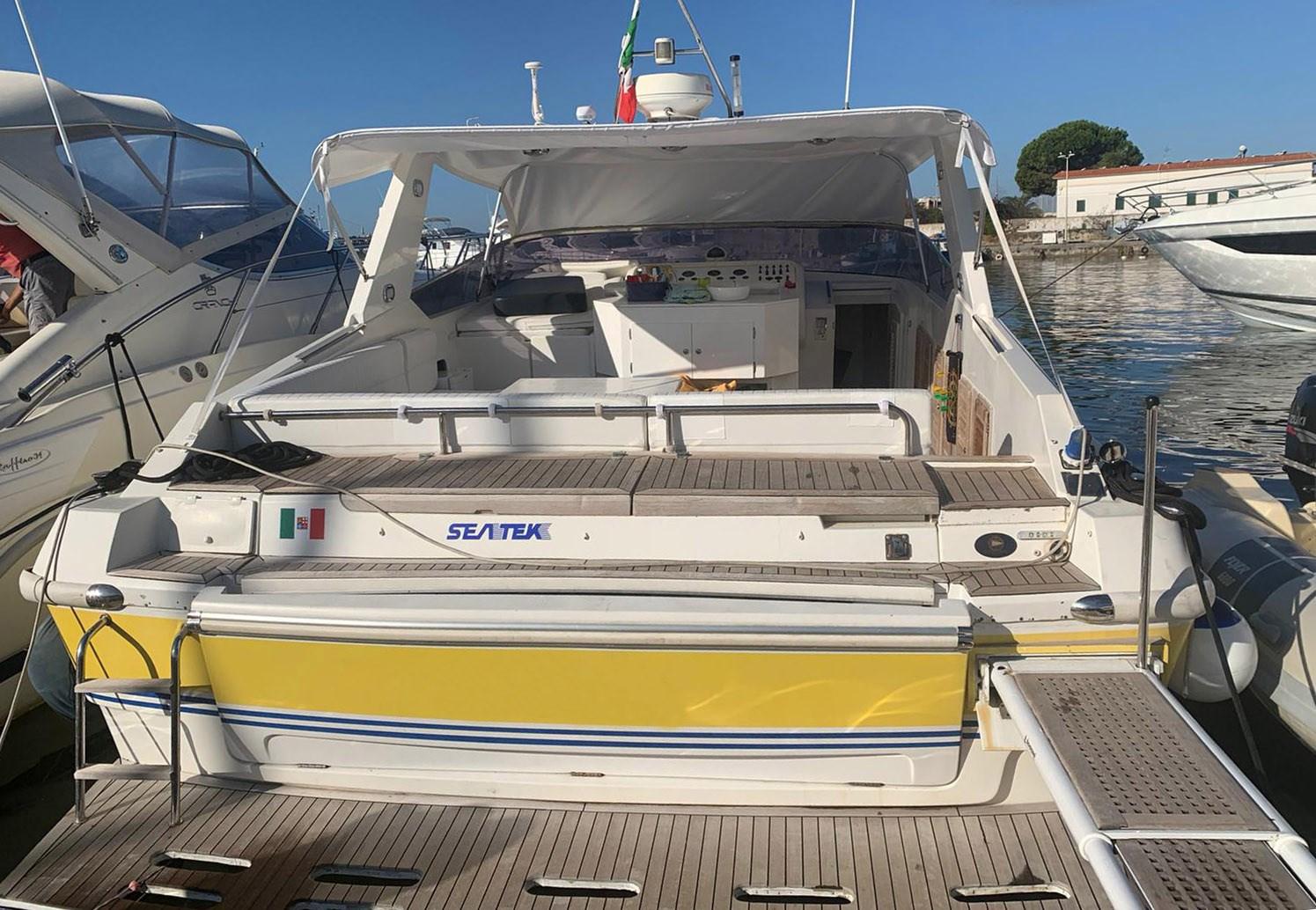 Electro-hydraulic gangway - outdoor cabinet with sink and electric two-burner hob - fridge - electric bow thruster - tender.