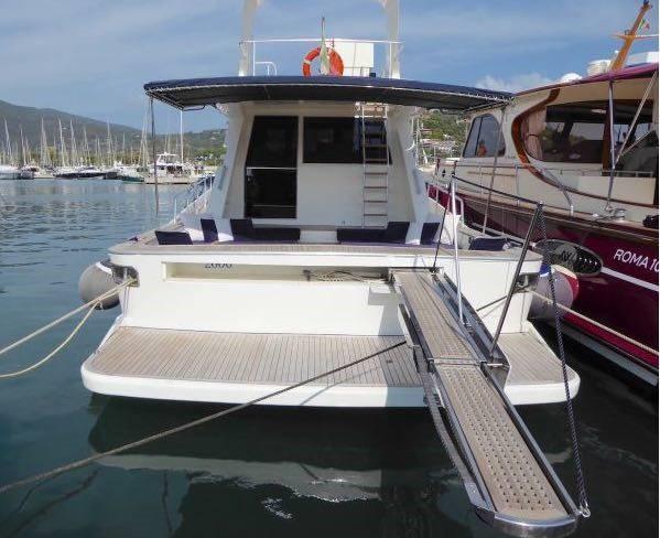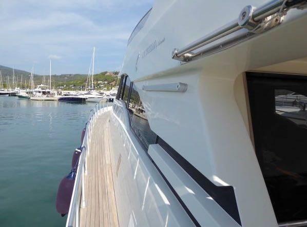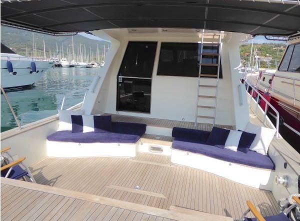 Works 2019/2020: battery change - rubberization of the deck - renovation of the teak deck of the flying and aft bridge - overhaul of the bow thruster with replacement of the dedicated batteries - landing of the generator for extraordinary overhaul - installation of the second fan coil in the saloon.