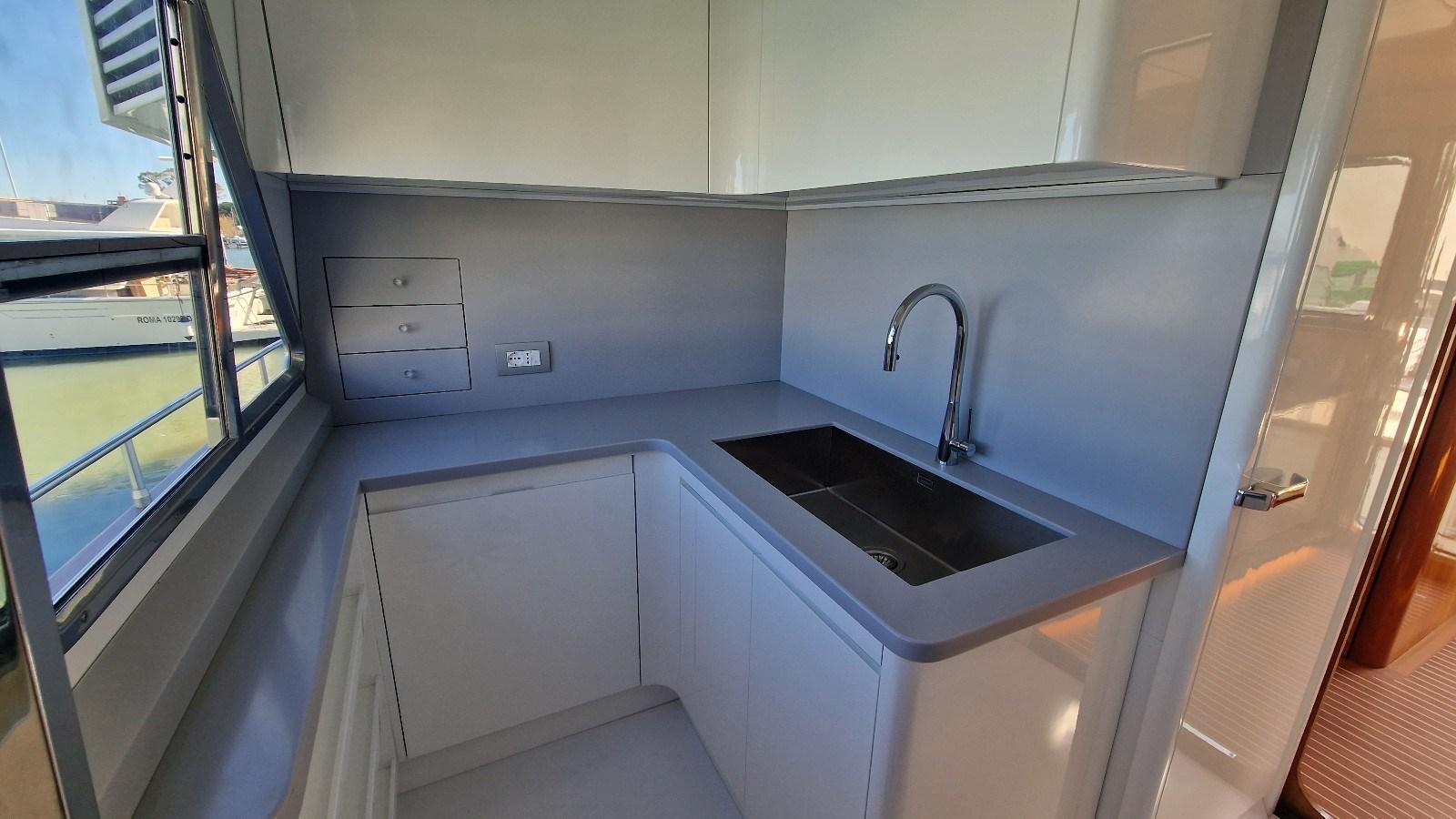 Galley, Deck Refrigerator, Washer dryer, Dishwasher, Ceramic hot plate.