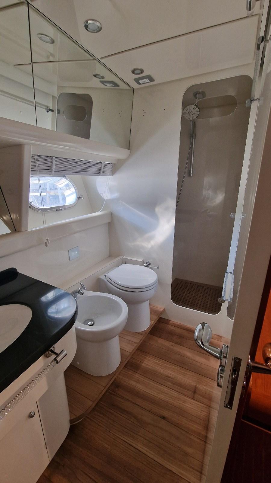 Humphree stabilizer fins - hydraulic stern platform capacity 2500 kg - new electrical system - general overhaul of the hydraulic system with Planus freshwater baths - Rexmar hydroseals - Quick Marine electric bow thruster - air conditioning - refrigerators - freezer - ice maker - satellite TV antenna - 5 burner induction hob - oven - dishwasher - 2 Kohler generators of 21 kw - submerged drains - bar cabinet on fly - washing machine dryer - Selmar watermaker 170lt/h - new Orvea 3500w windlass.