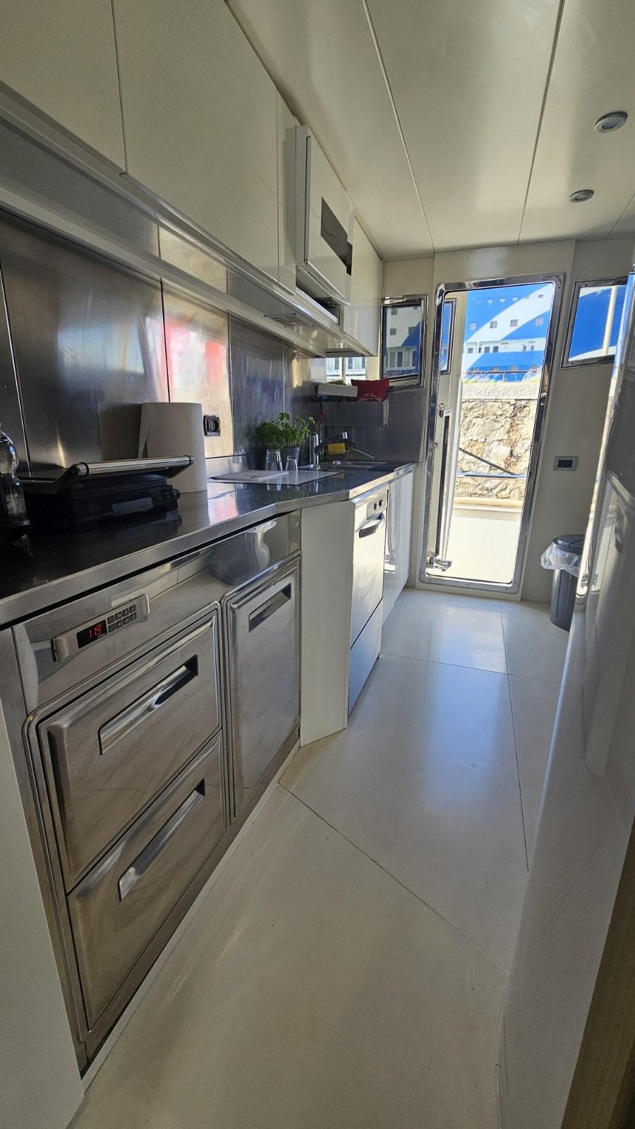 Satellite TV antenna - LCD TV - air conditioning Hot/cold air - bow thruster - stern platform with tender lift - Smartgyro gyroscopic stabilizer - washing machine - fridge and freezer in the kitchen - fridge and freezer in the engine room - fridge on the fly - T-top fly - 5-burner electric hob - 90 cm oven - dishwasher.