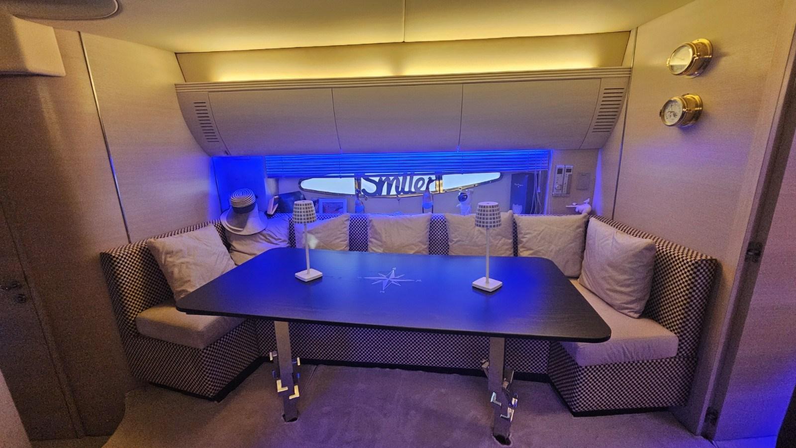 Kohler 8 kW generator set - Climma air conditioning - electric bow thruster - retractable electro-hydraulic gangway - electric hard-top awning - side windows wheelhouse with increased electric opening - wet bar in cockpit with sink, electric hob and double fridge - modified cockpit table (larger surface) - 2-burner electric hob - fridge - fridge/freezer - folding table in dinette - digital TV antenna - smart LCD TV - Sony dolby surround - tender with outboard - tender garage with electric winch - awning on bow sundeck - cockpit closing awnings.