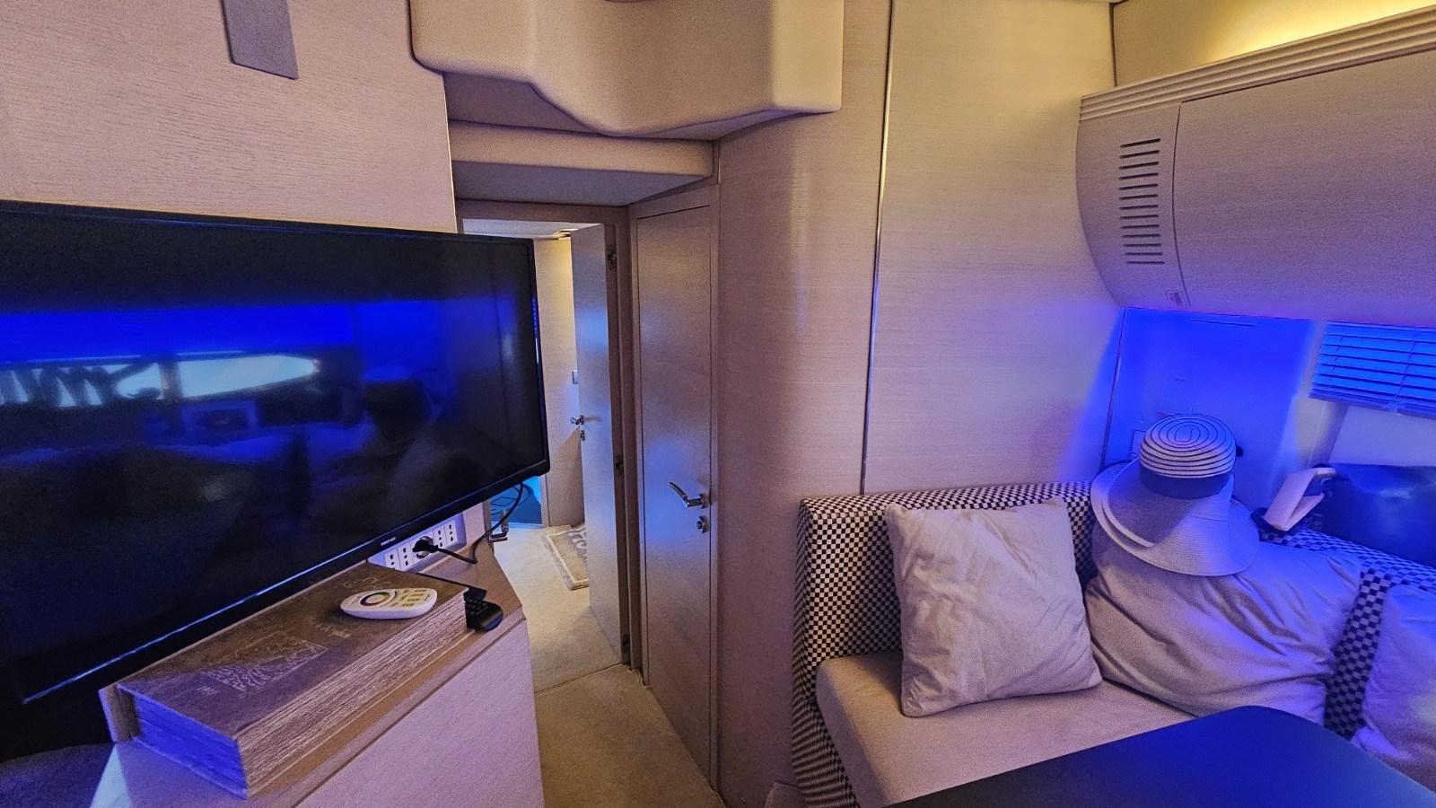 complete overhaul of air conditioning - new autoclave pumps (2) - new battery chargers (2) - replacement of all batteries (services and engines) - new electric battery switches (2) - new parallel on the bridge - 2 new fridges with 2 separate engines (one possibility freezer) - new external fridges (2) - new smart LCD TVs (4) with wifi - new digital TV antenna - Dolby surround on the owner's cabin and dinette - overhaul of the hard top curtain (new steel cables, new awning) - new external upholstery - new blackout glass cover awnings - bluetooth stereo - complete overhaul of gangway - awning on bow sundeck new - tender 2.5 with 6hp mercury new - new carpet - new mattresses - engine room paint bilges and sound absorbing new - new stainless steel grey water tanks with new oversized pumps - all LED lights.
