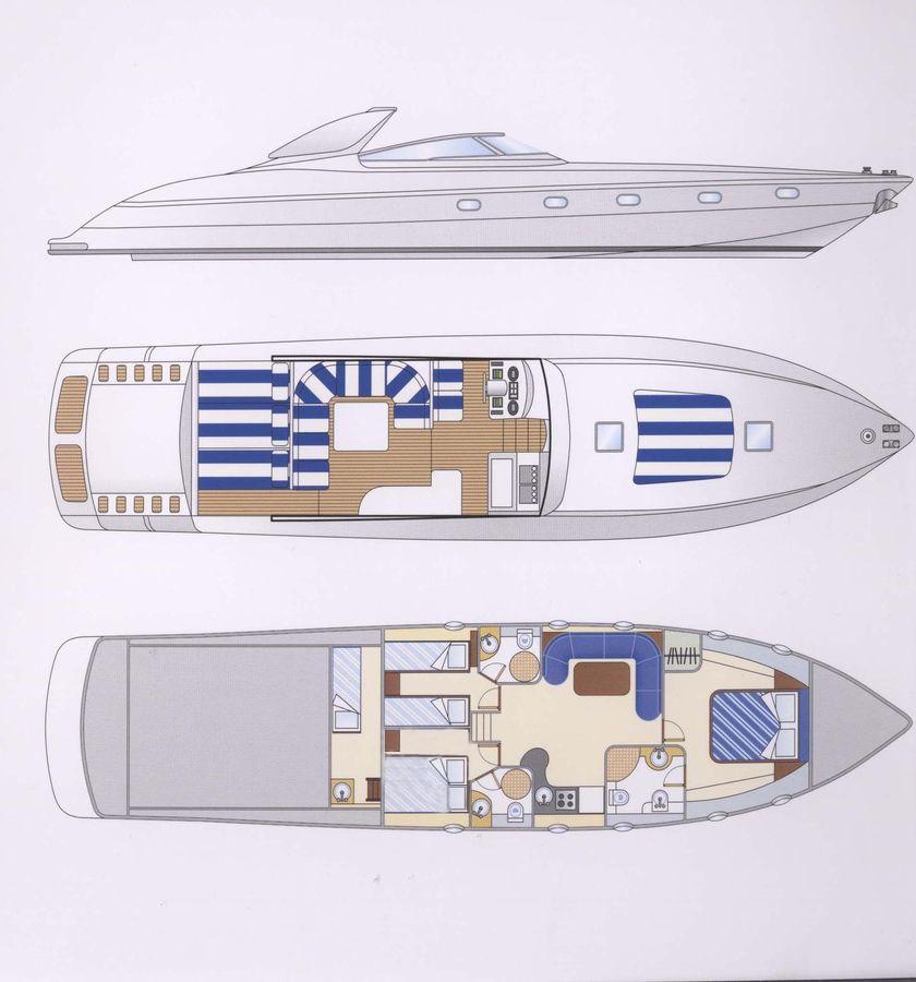 installation of new Garmin navigation instrumentation - official extraordinary maintenance of Arneson transmissions (fittings, seals, control units, etc.) - propeller balancing - installation of new Dometic air conditioning - replacement of kitchen hob - installation of combined microwave oven - replacement of cockpit fridge - extraordinary maintenance of the generator - installation of synthetic teak in cockpit and dinette - complete polishing of the hull and superstructure - installation of the system stereo Fusion - lacquering doors and furniture - overhaul plumbing, black water, electrical.