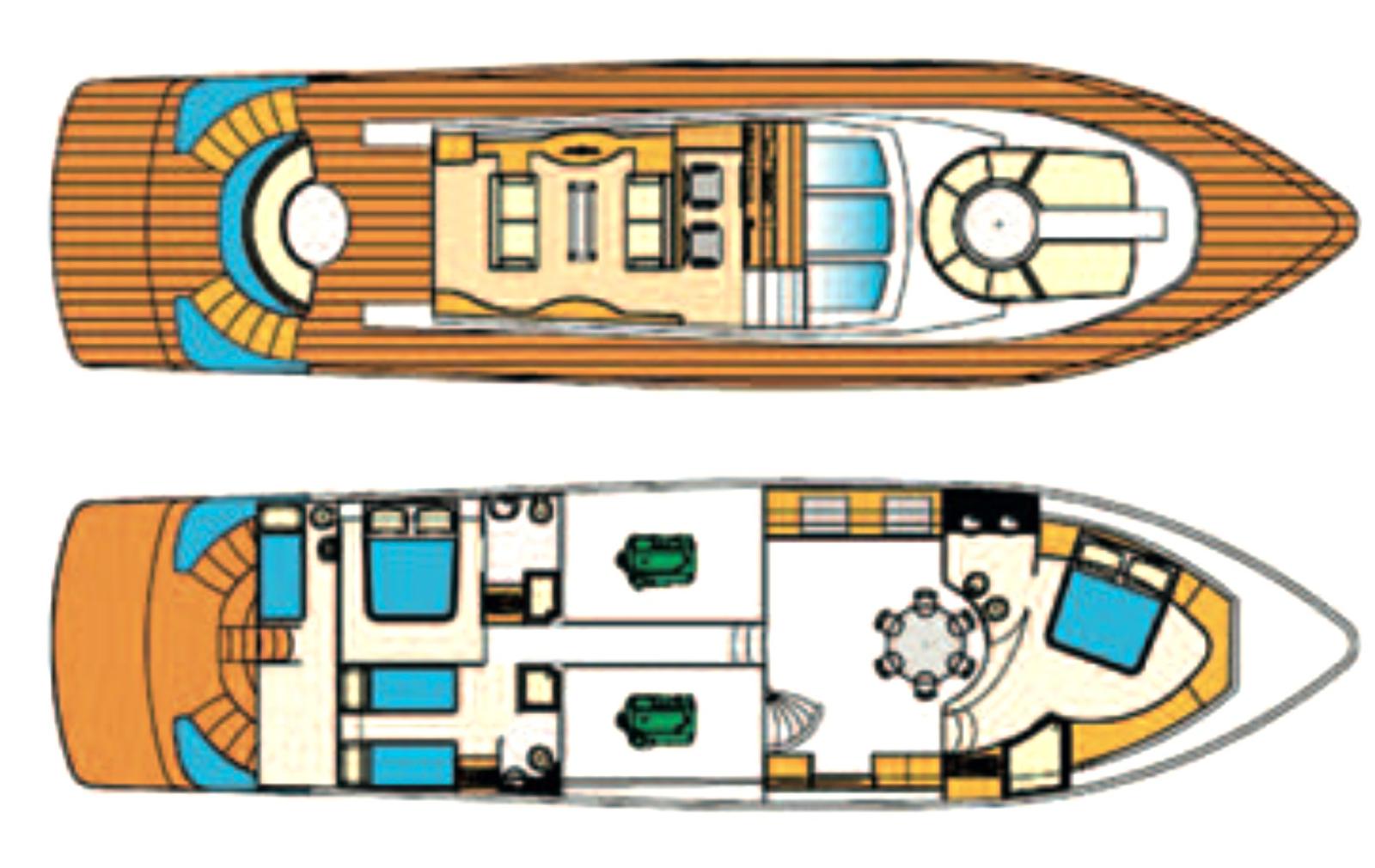 Master cabin with double bed and bathroom - VIP cabin with double bed and bathroom - guest cabin with two flat beds, third foldaway bed and bathroom.