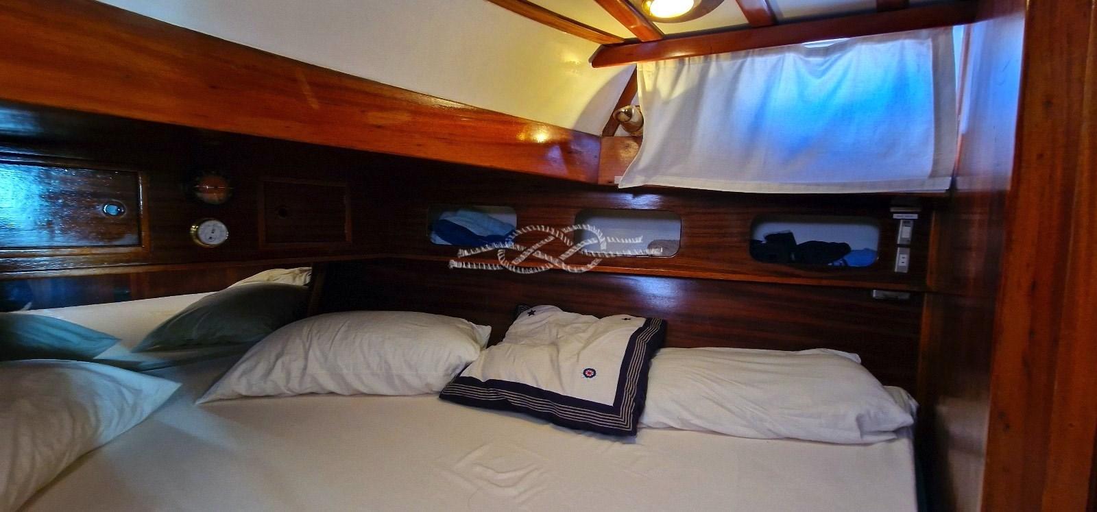 Owner's cabin in the bow with two V-shaped beds that can be converted into a double bed - cabin with four bunk beds, possibility of separating the cabin with sliding bulkhead into two - guest bathroom.