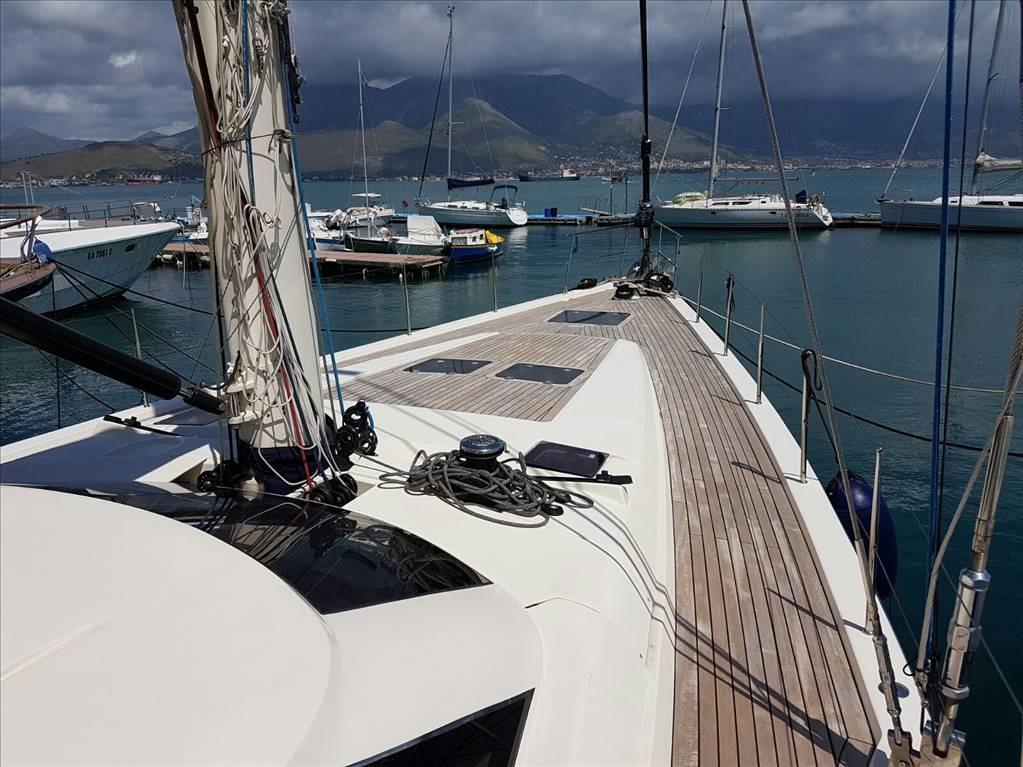 Sail area approx. 200 m2 - jib furler - hydraulic vang - double wheel steering - electric Max Power bow thruster - aft garage for tender - Zodiac tender - TV in dinette and all guest cabins - fridge - Bosh dishwasher - 4-burner induction hob - oven - Panasonic microwave - Climma 50,000 BTU air conditioning - washing machine - Shenker 180 lt/h watermaker - TV - Intellian 4-outlet satellite antenna - folding spray hood - bimini - bow and cockpit sunbathing cushions - inverter 24/220volt/1500 watts - electric winch in the bow - spy equipment with bowsprit - blue hull.