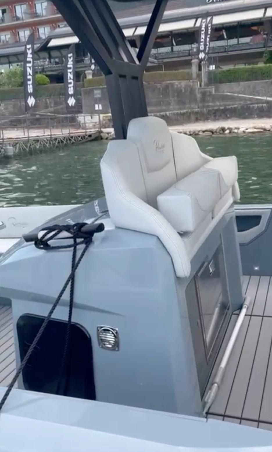Manoeuvring joystick - bow thruster - bar cabinet with sink and electric hob - external fridge - T-Top - windlass winch - anchor recessed in the bow roller - Clarion hi-fi stereo - cockpit table with C-shaped sofa that can be converted into a sundeck - air conditioning - shore electrical socket.