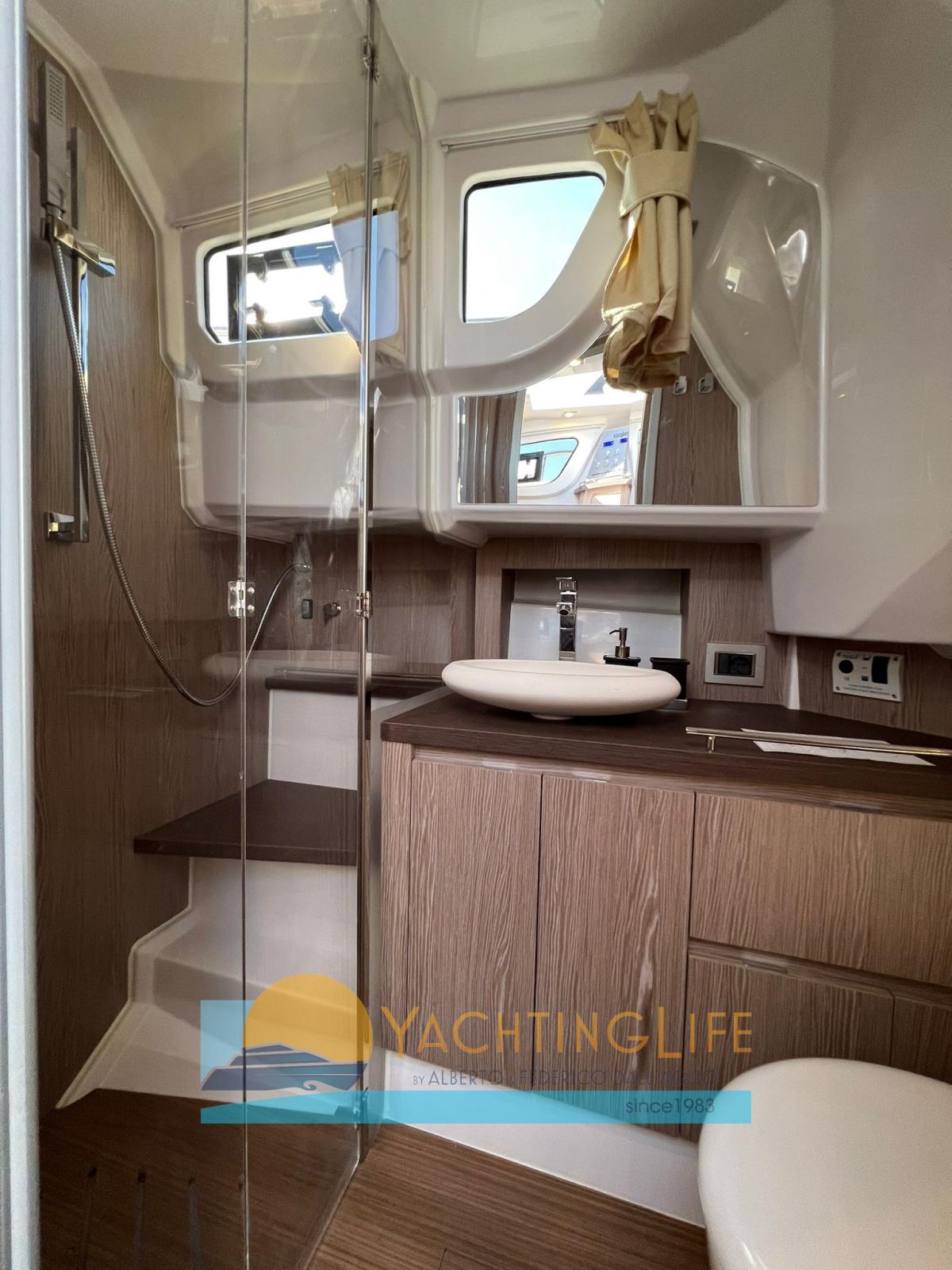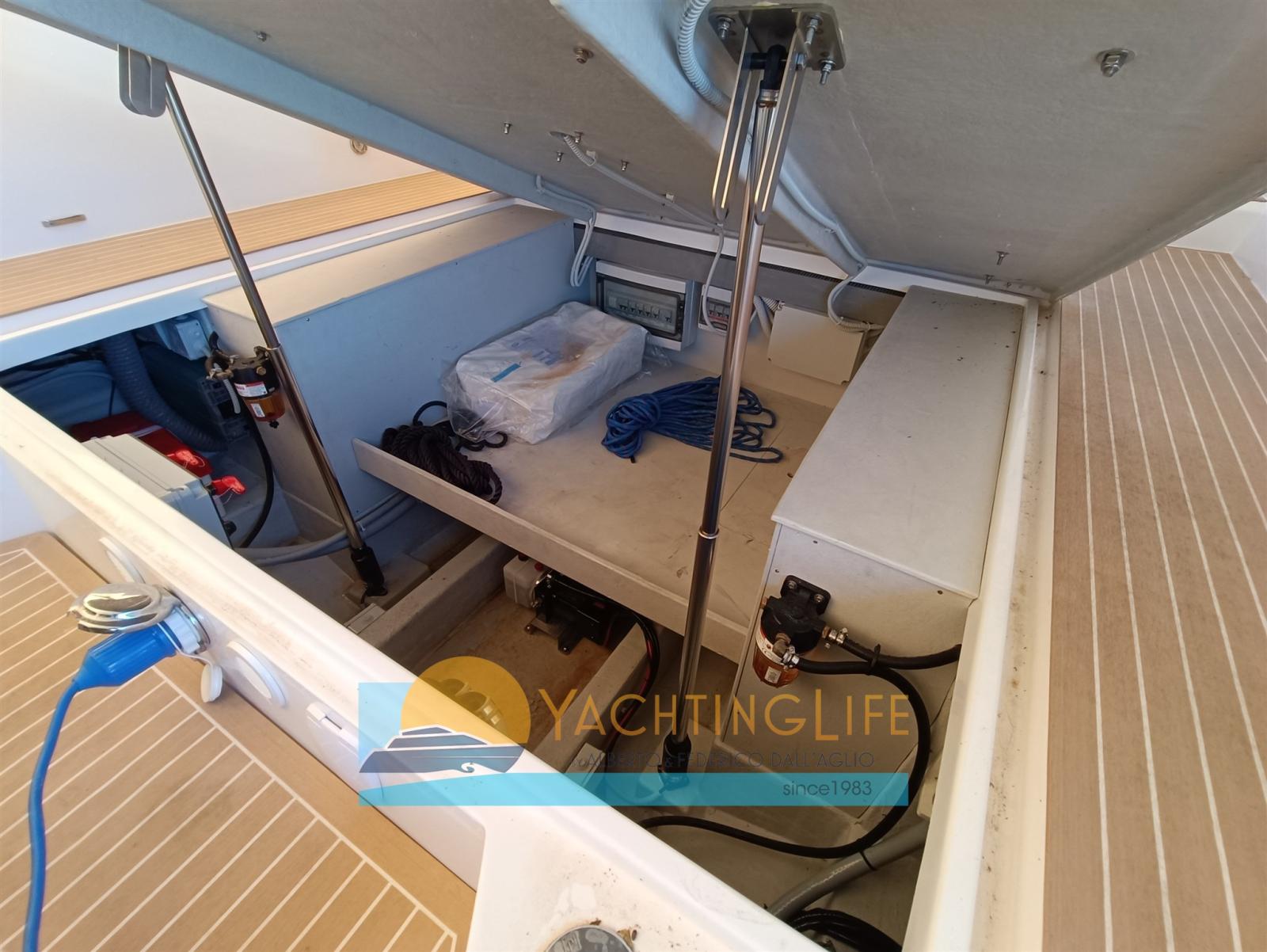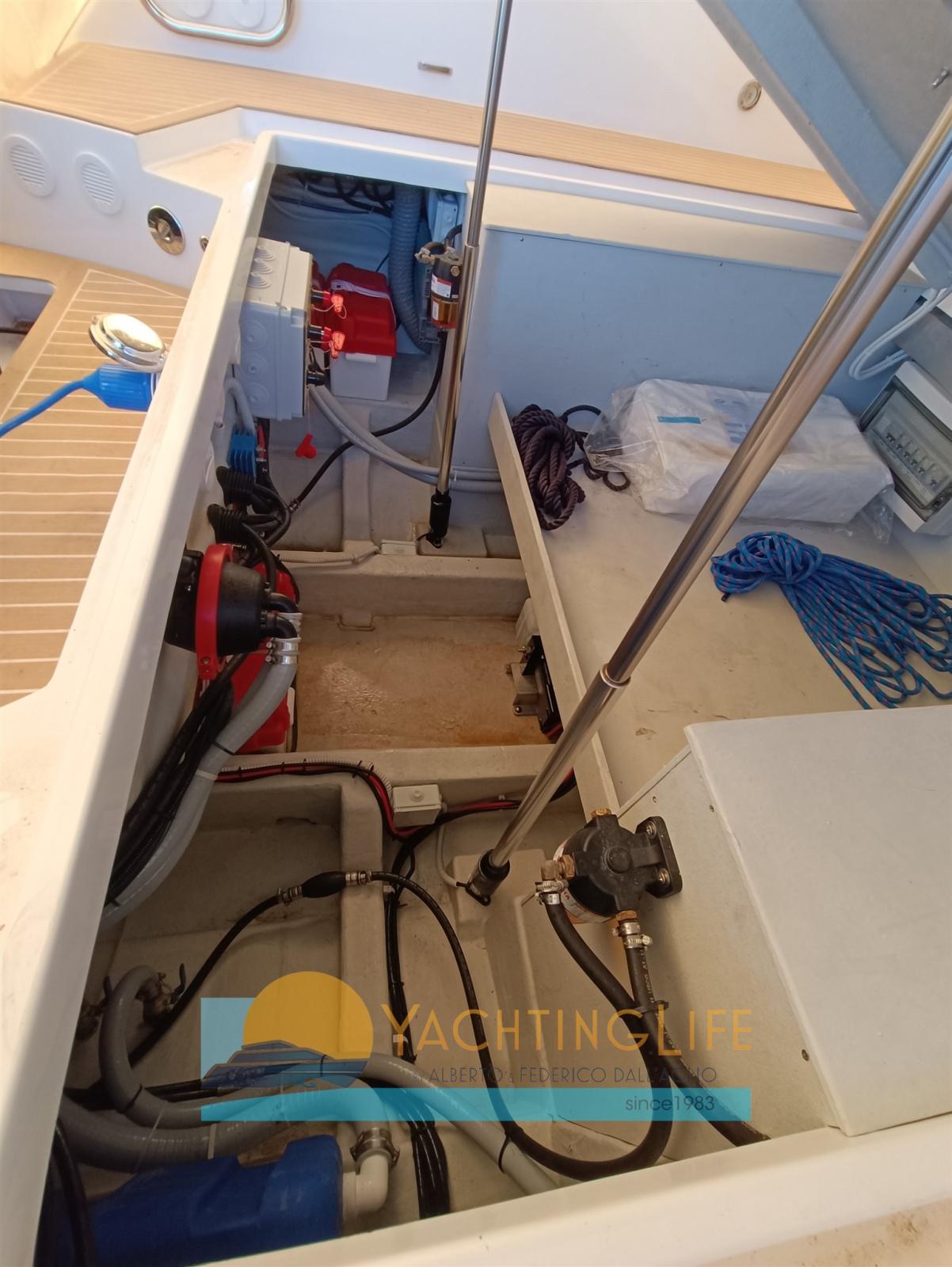 Water pressure pump, 2 Deck Shower, Electric Flaps (Zip Wake), Flaps Indicators, Washbasin in the cockpit, Automatic Bilge Pump, Teak Cockpit (sintetico), Shorepower connector, Electric Windlass, 2 swimming ladder, cockpit table (elettrico), Horn.