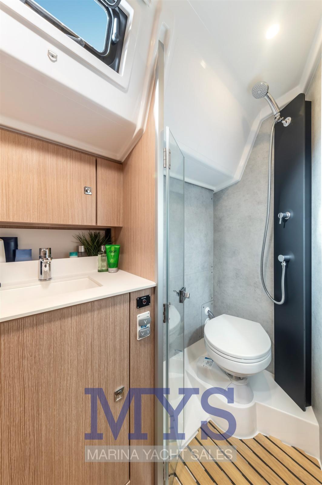 Hot and cold water shower in the cockpit
