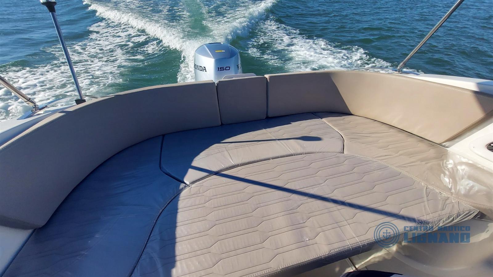 Also complete with: custom-made full cover, table support foot, hydraulic steering, battery system and diverter, fuel filter, Garmin Echomap UHD2 52Cv GPS, Adriatic map, transducer, ropes, fenders, boat hook, first aid kit, scoop, 6 150N jackets, buoy, life jacket, anchor kit, life jackets, complete equipment.