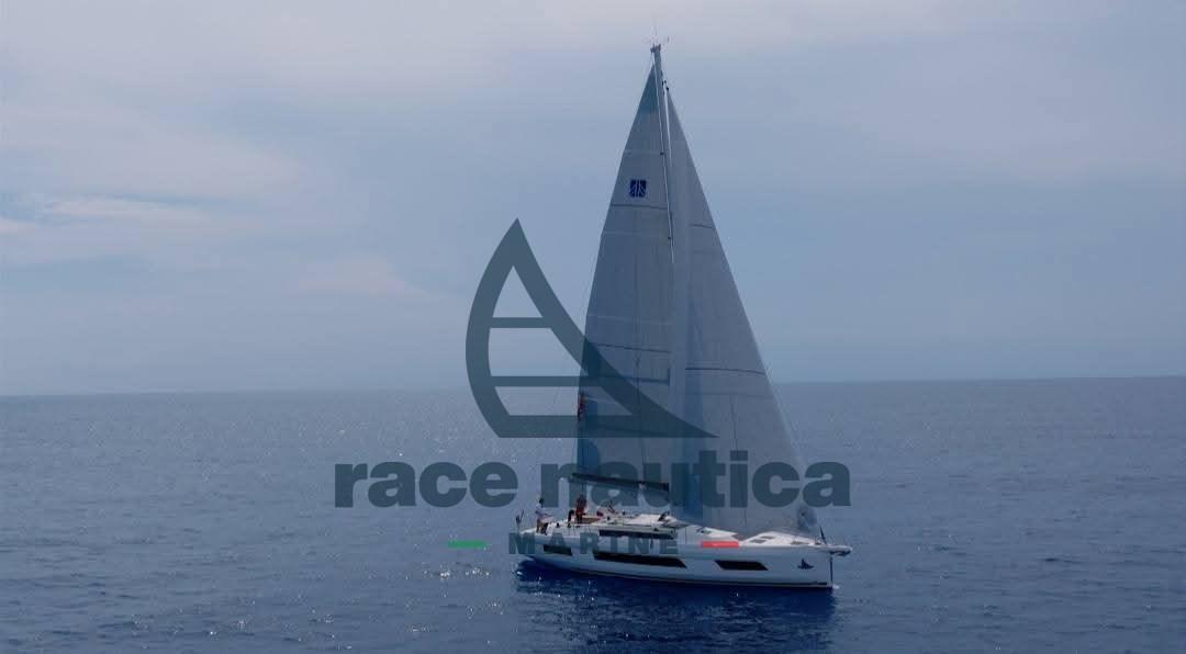 Dufour 44 – 3-cabin + 2-bathroom version with teak interior – ready for delivery. Pre-owned, zero mileage. Not registered, used solely as a demonstration boat. Comfort version, interior LED lighting + indirect lighting, long cast-iron keel (2.25 m), Volvo Penta 60 HP Sail Drive engine, full-batten mainsail and self-tacking jib in Dacron, standard mast, bow puller, fixed stern stay, 2 halyard winches, cockpit bench seats and stern seats in natural teak, LED navigation lights, 3-burner gas hob with oven, dinette table, stainless steel swim ladder with handrails and teak steps, engine mount, automatic electric bilge pump with alarm, opening side gates on the gunwales, leather-covered steering wheel, black water tanks, 4 T50 winches aft, genoa tracks on the deckhouse, gennaker rig, two Triton '2' multifunction displays (one on the left and one on the right), VHF V20 B, NAC3 autopilot control, mainsail and offshore headsail incompatible with mainsail furler, T50 electric winch on the deckhouse port side, 2 extra portholes in the cockpit for the aft cabin, bimini, bimini over the helm area, sprayhood with handrail, stainless steel bow protection, anchor with chain and rope, 6 fenders, 3 mooring lines, 50m chain instead of rope, Standard classic cushions, outdoor barbecue and sink in the aft seating area.