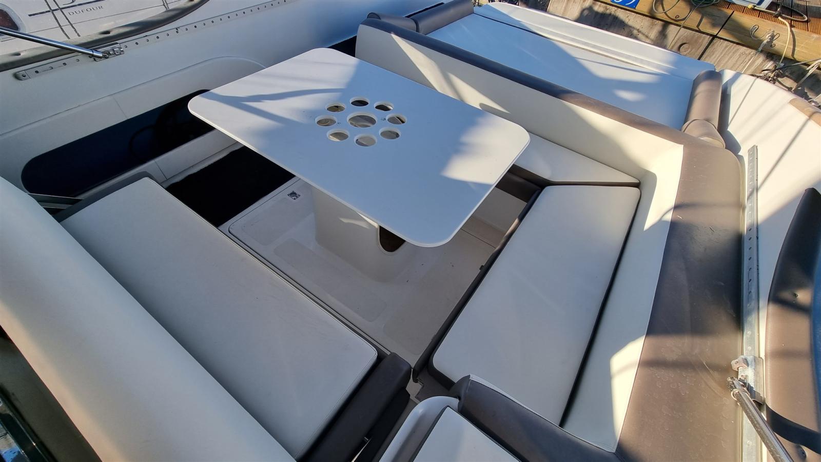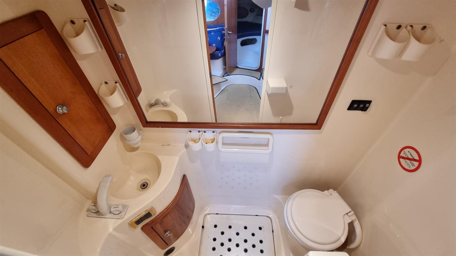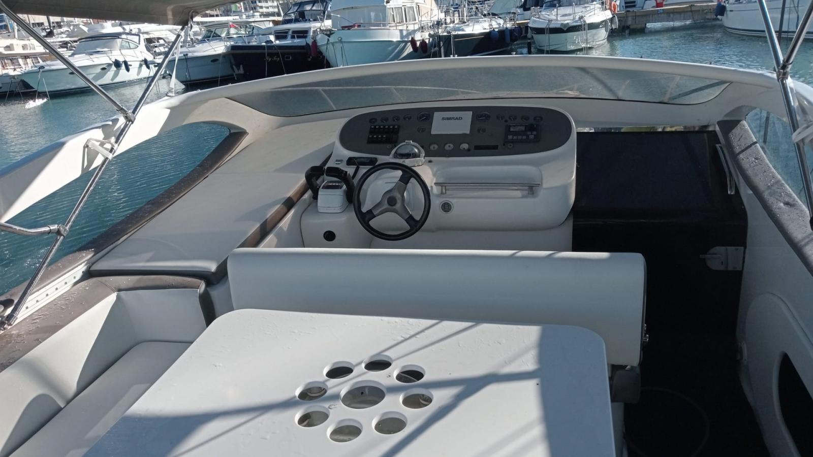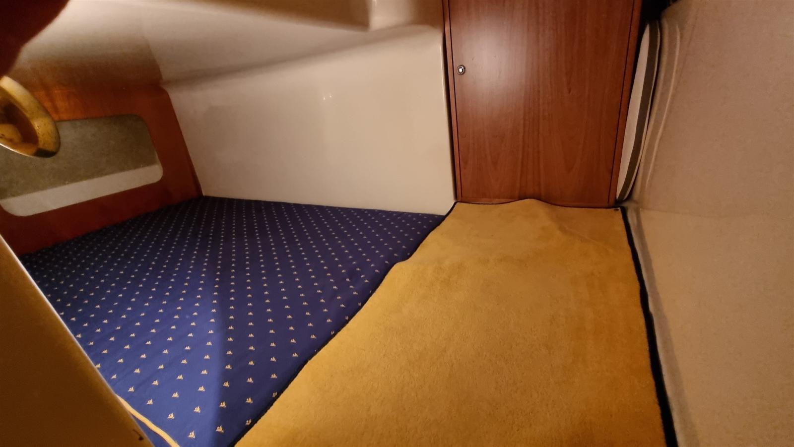 boat as new, a major refit was done in 2024: complete hull and deck polishing. repainted the gray side band, anti-vigetetative, bilge cleaning and complete repainting, new side windows, total renovation of the cushions (stern, bow, driver's seat and table sofa in the cockpit, teak sanding in the platform, new awning, new batteries and battery switch, new electric winch, new charger, new cartographic GPS latest generation. New boiler, replacement of all seacocks, replacement of all diesel and water pipes, soundproofing of new engines, new bilge pumps, new kitchen gas pipe, led rgb underwater lights, new dashboard switches, repainted dashboard, new rudder angle, new diesel level instrument, new fusion stereo system, new vhf Engines redone at zero hours, Feet completely overhauled, steel propellers.