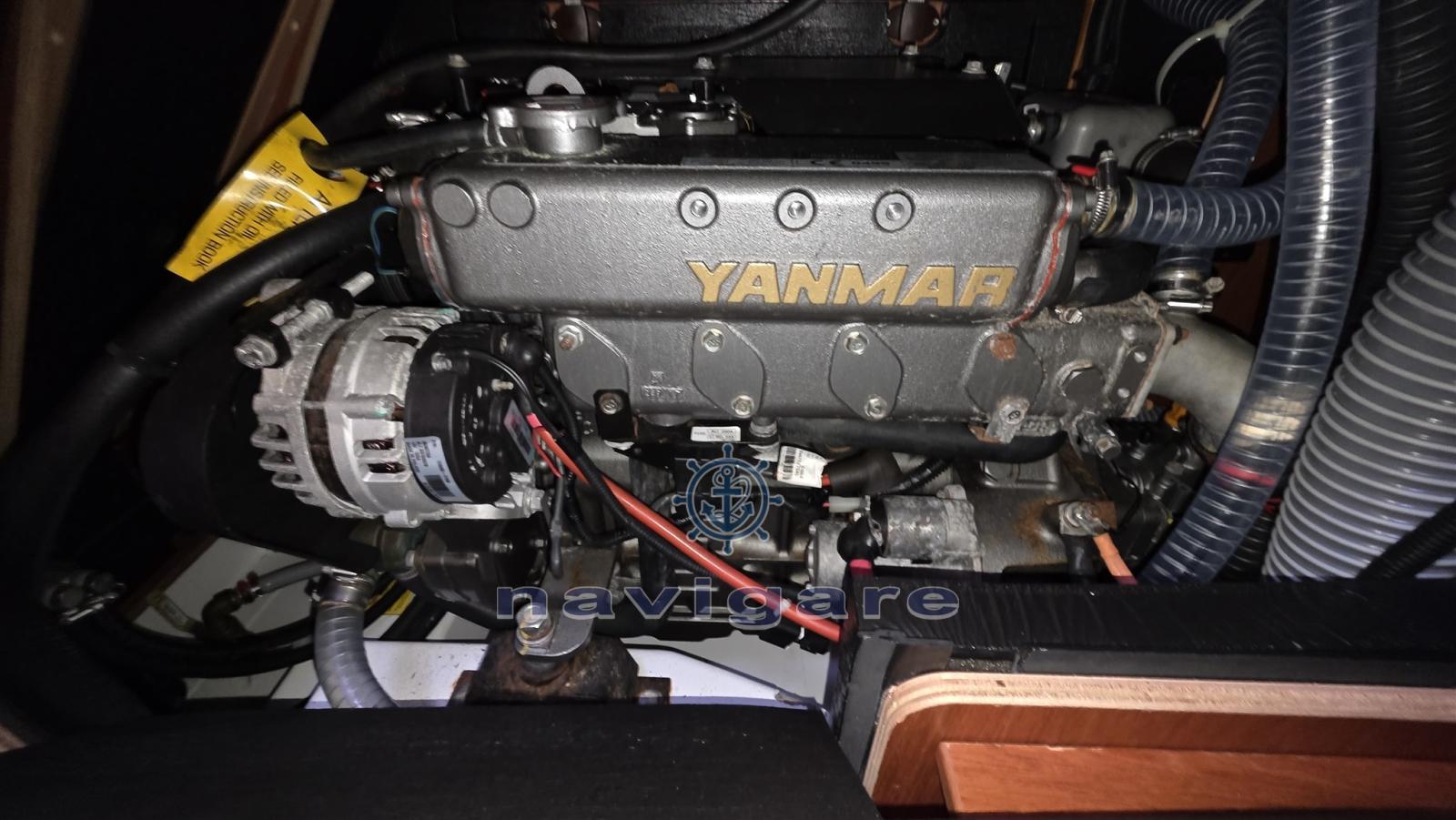 Engine Alarm, Alternator, Water pressure pump, Shore power cable, Deck Shower, Twin Steering, Courtesy Lights, Battery Monitor, Outboard engine for tender (YAMAHA), Fenders, Platform, Manual Bilge Pump, Teak Cockpit, Shorepower connector, Electric Windlass, Strand rigging, swimming ladder, Outboard Engine Support Bracket, cockpit table, Tender, Horn, 4 Winch (HARKEN SELFTAILING).