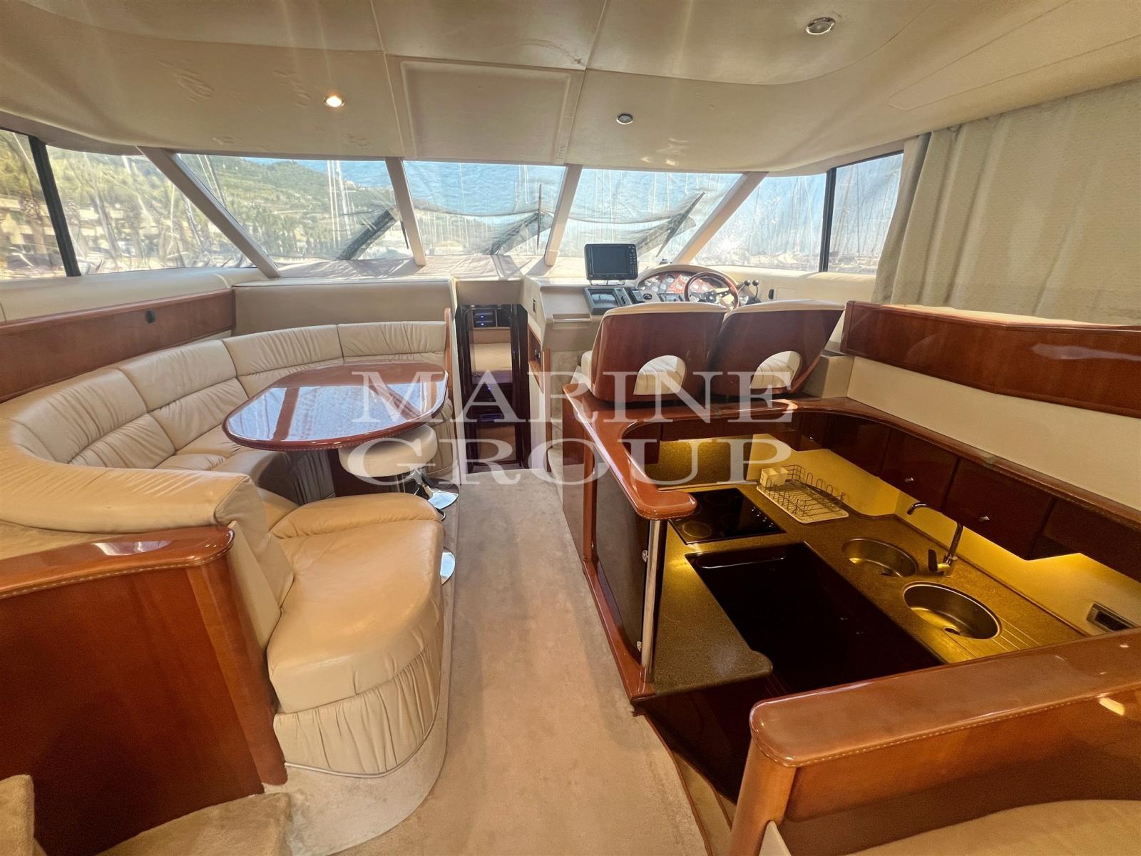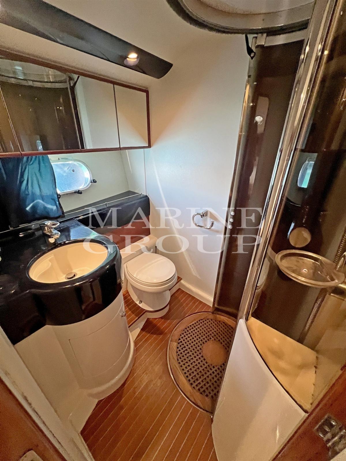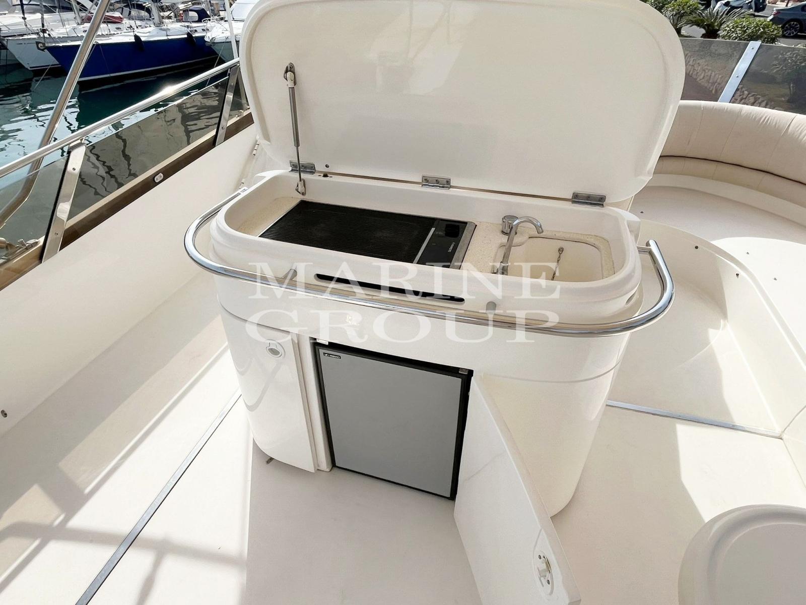 Speakers - Satellite TV antenna - Air conditioning - Mobile bar on the fly with BBQ / Grill, sink, fridge - Bimini on the fly - Boiler - Air conditioning / Reversible air conditioning - Cockpit cover (winter closure) - Complete external cushions: stern, bow, flybridge, cockpit - N.2 Internal refrigerator (in the galley and in the saloon) - Black water system - Galley / laundry room with washing machine - Kitchen equipped with ceramic hob burners, fridge, microwave - 12v internal sockets - 220v internal sockets - AM/FM radio - Stereo - N.2 TVs (in saloon and in the owner's cabin) - Black water tank - N.2 camera (cockpit and aft platform) - N.2 Window covers (winter and summer) - Radar antenna - Battery charger - External shower - Double wheelhouse - Bow thruster - Hydraulic flaps - Gangway (electrohydraulic) - Tender davits (gangway) - Teak in cockpit and bathing platform (made new 2024) - Door entrance - 220V dock socket - Shore water intake - Rollbar - Electric anchor windlass - Swimming ladder - N.2 Stern mooring winch - Bow mooring winch