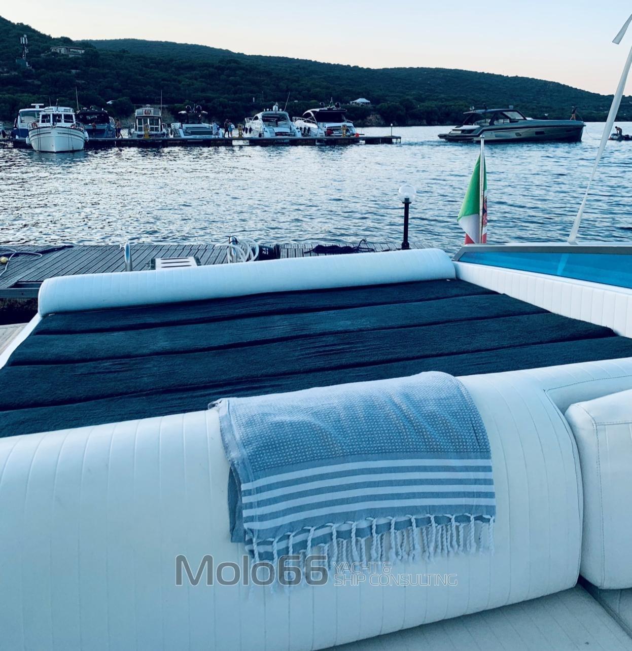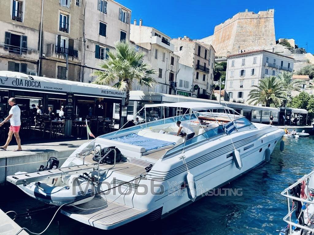 Engine Alarm, Bilge Alarm, Water pressure pump, Deck Shower, Hydraulic Flaps, Fire Extinguishing System, Gangway, Platform, Teak Cockpit, Shorepower connector, Voltage Rectifier, Electric Windlass, swimming ladder, cockpit table, Horn.