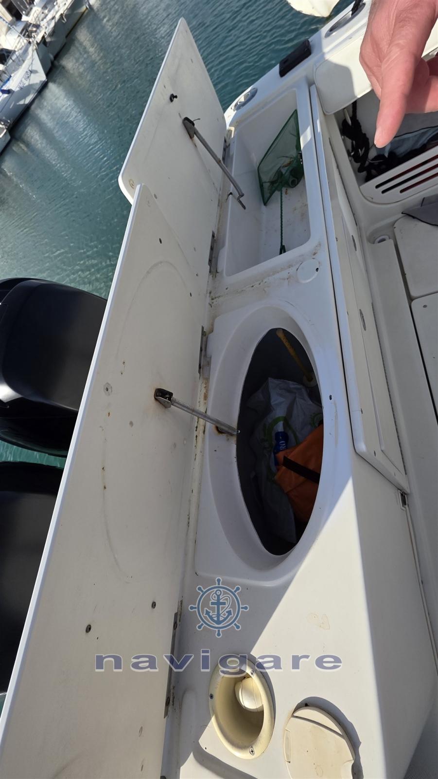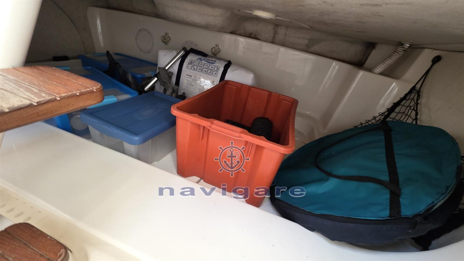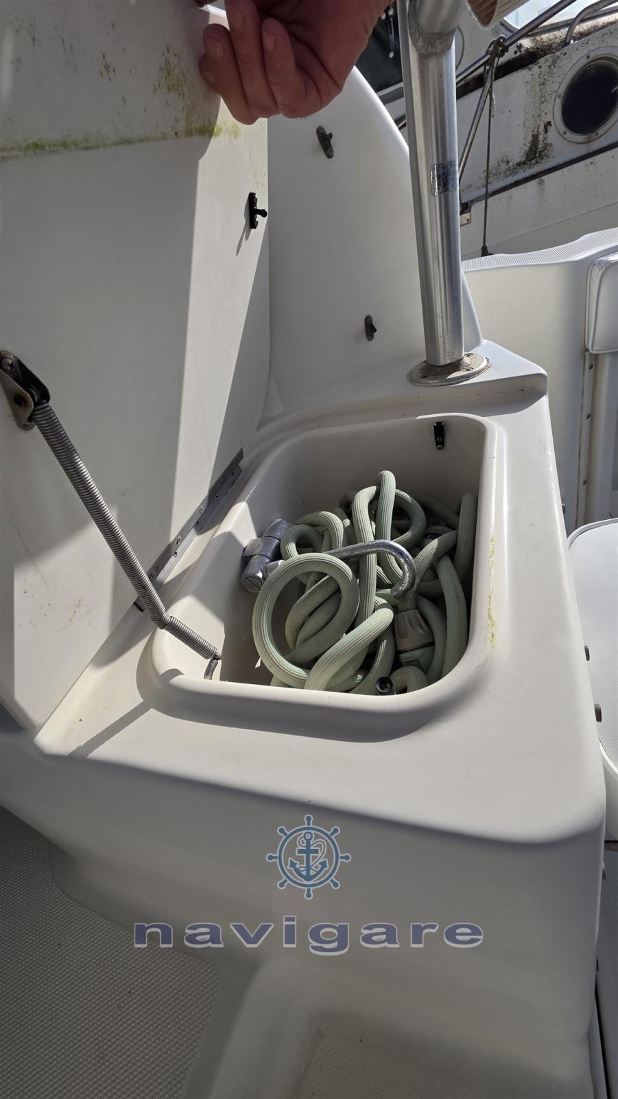 Engine Alarm, 3 Batteries (+ PACCO BATTERIE MINNKOTA), Hydraulic Flaps (N°2), Washbasin in the cockpit, Courtesy Lights, Automatic Bilge Pump, Manual Bilge Pump, Seawater Pump, Shorepower connector, Electric Windlass, swimming ladder, T-Top.